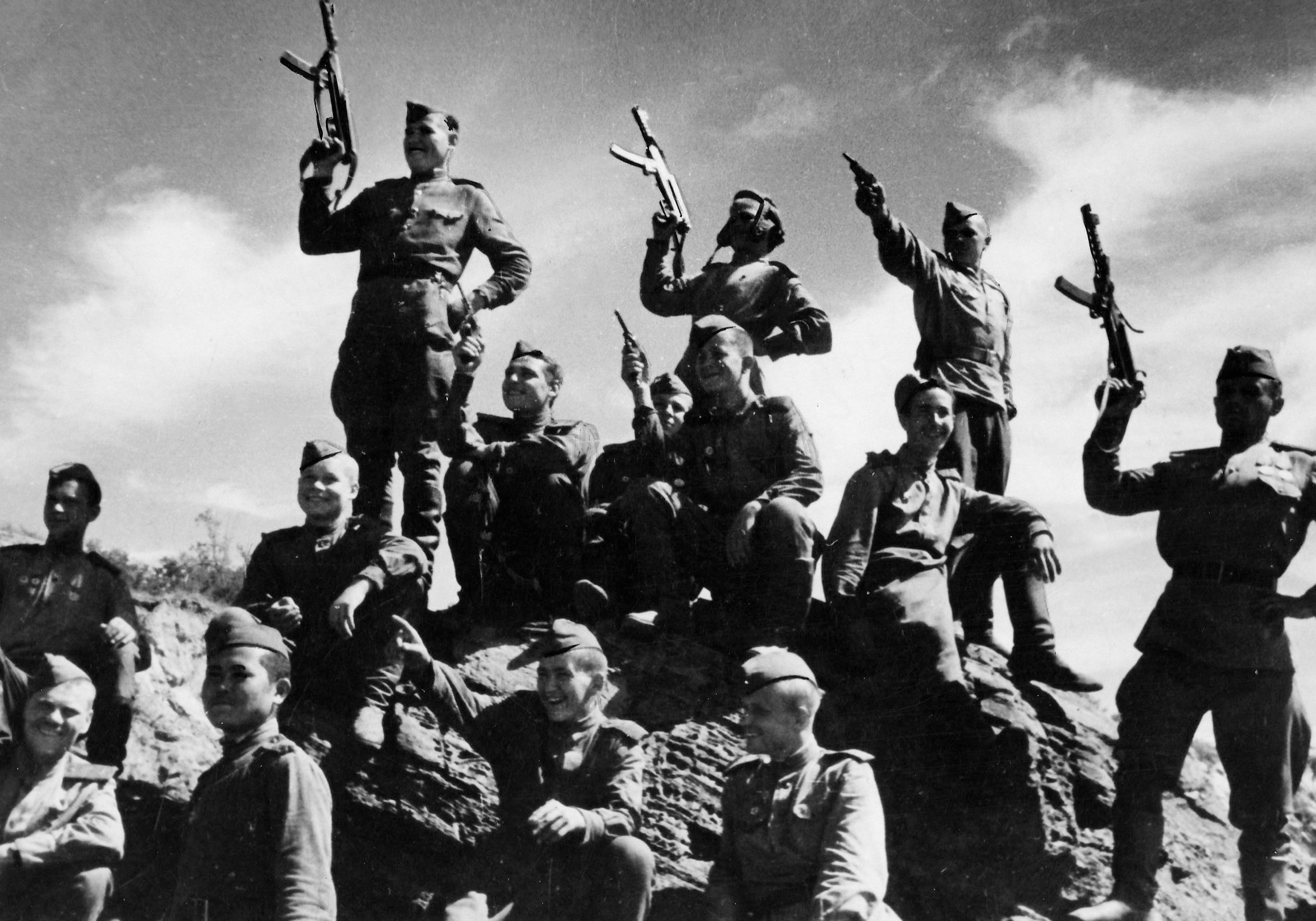 - Бойцы десантники штурмовых групп салютуют Победе, май 1945 года