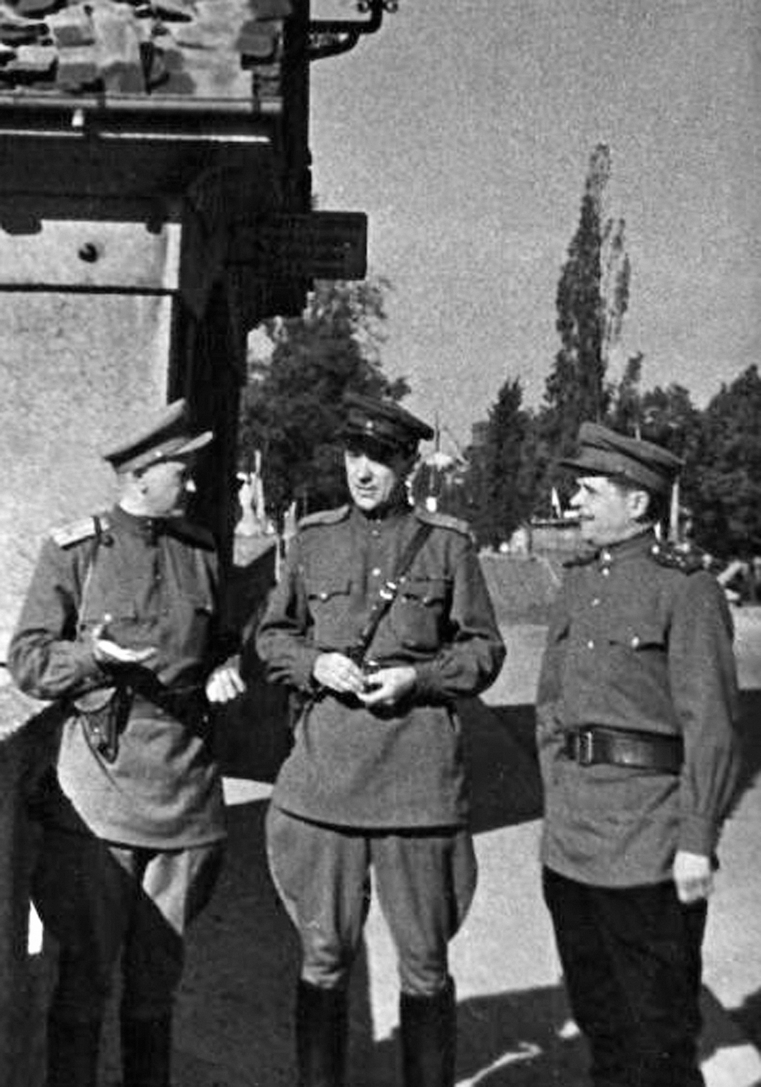 - В центре военный корреспондент газеты «Правда» Б.Н. Полевой. Фотография сделана во время встречи И.С. Конева и О.Бредли