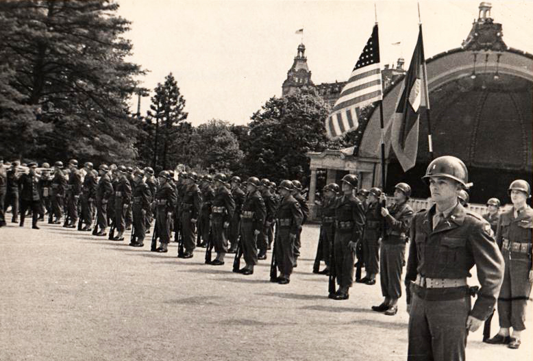 - Почетный караул американских войск встречает командующего 1-м Украинским фронтом маршала СССР И.С. Конева, г. Бад-Вильдунген