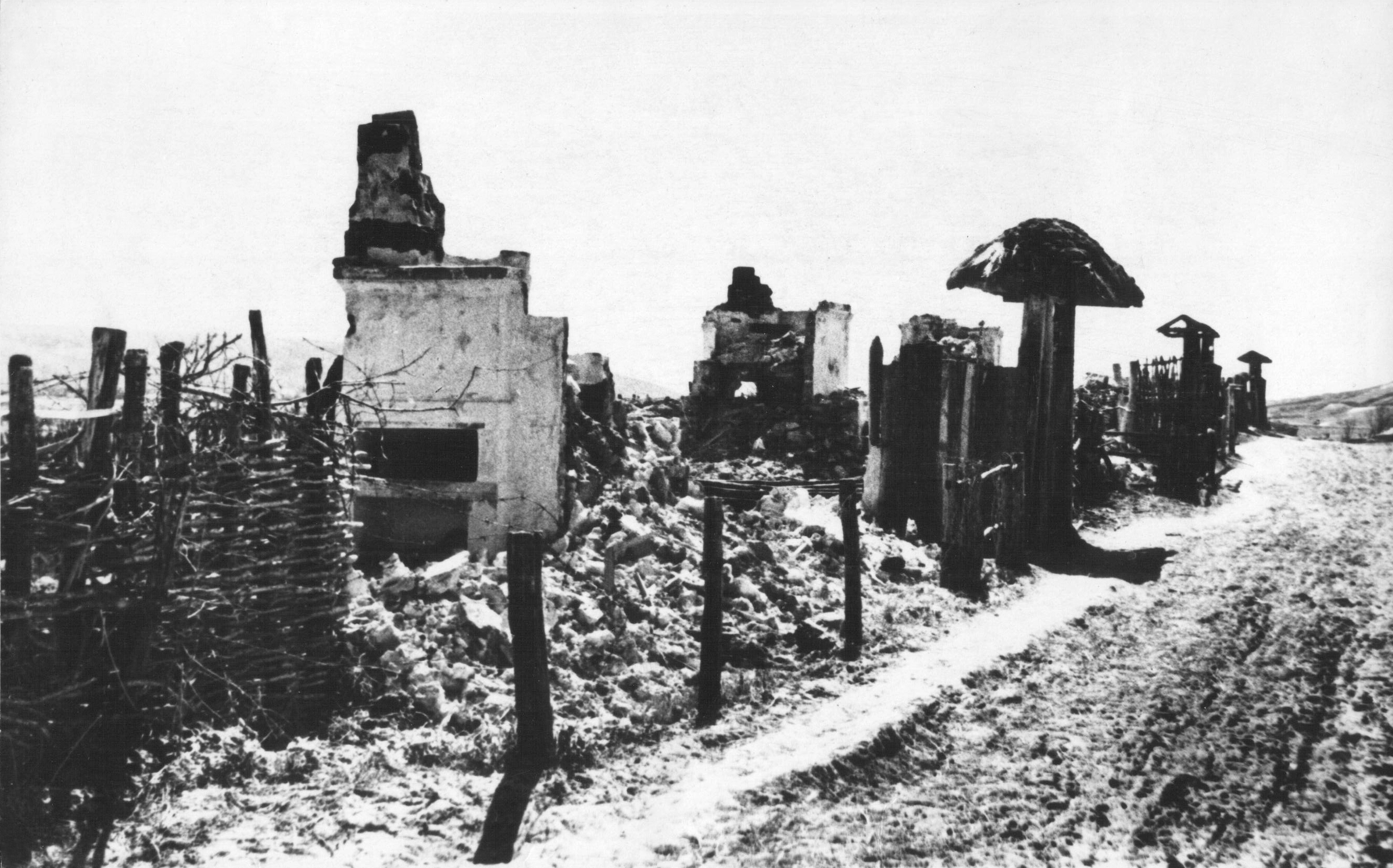 - Окраина города Серафимовича, разрушенного и сожженного гитлеровцами. Сталинградско-Донской фронт, осень 1942
