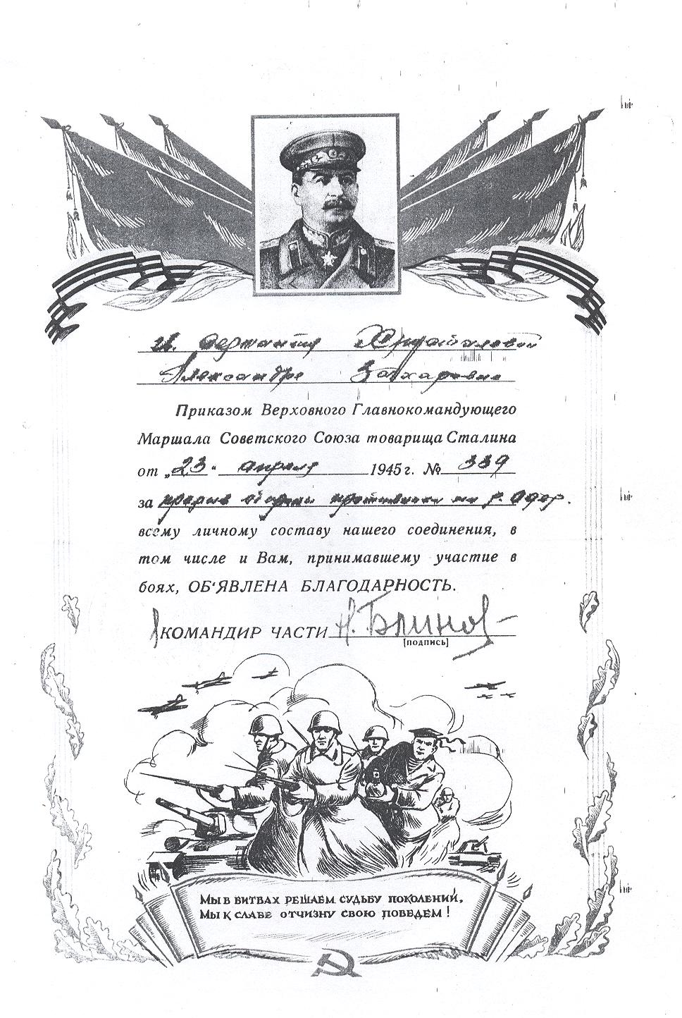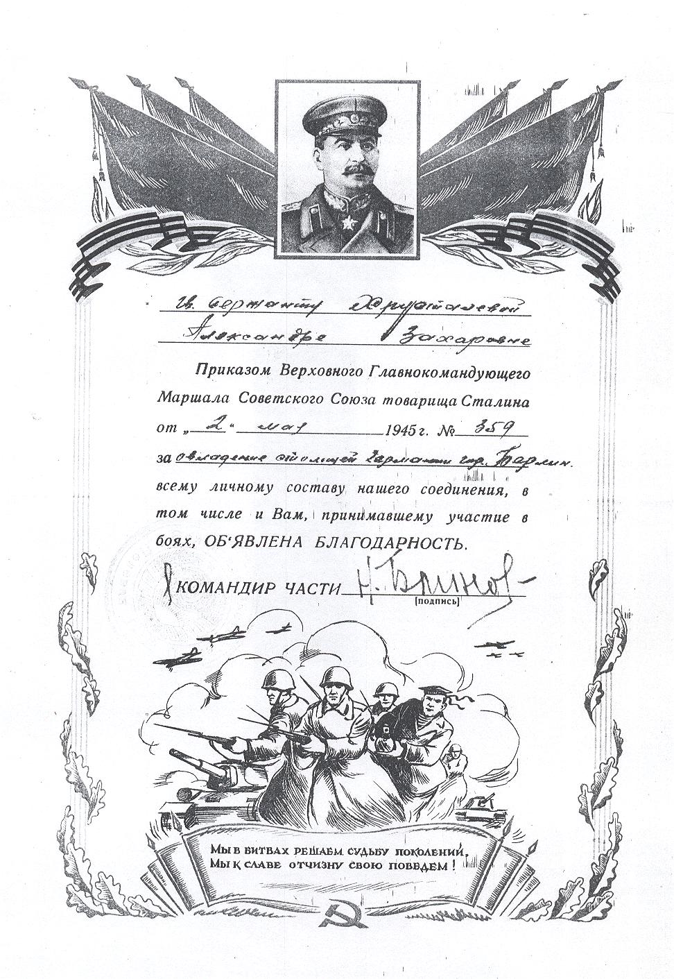 На долю Александры Захаровны Хрусталевой пришлись ключевые сражения Великой Отечественной войны: Сталинградская битва, Висло-Одерская стратегическая наступательная операция, победоносное взятие Берлина. Военную службу Александра Хрусталёва закончила 15 октября 1945-го в звании гвардии сержанта.