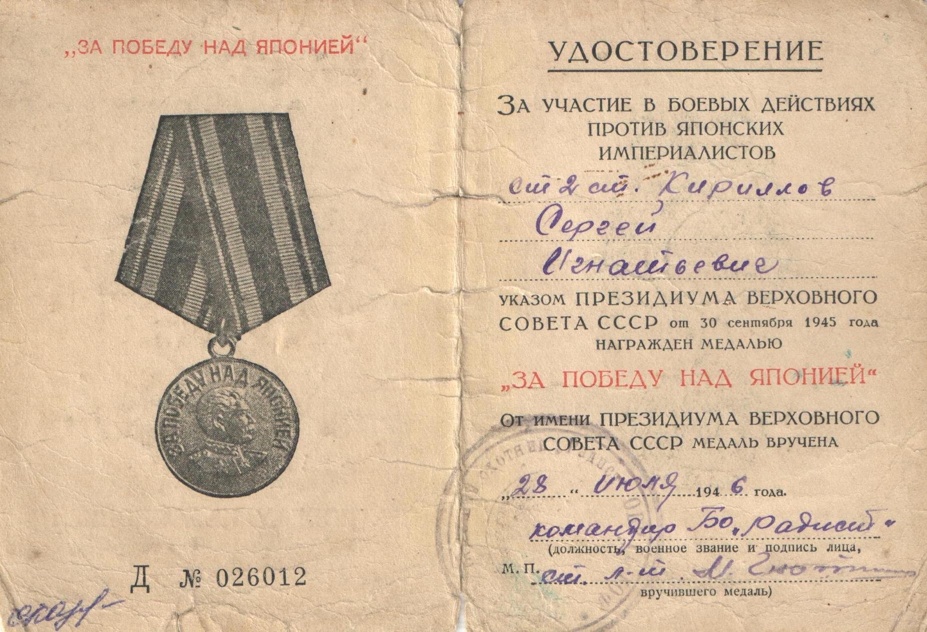 Краснофлотец, в конце войны служил на Тихоокеанском флоте. После войны работал учителем-воспитателем в Куйбышевской школе-интернате №4. Информации мало, потому что Сергей Игнатьевич с дочерью общался мало по причине развода с её матерью. Известно, что он родился 1 марта 1926 года, умер 8 февраля 2001 года в Самаре. Награжден медалью «За победу над Японией».