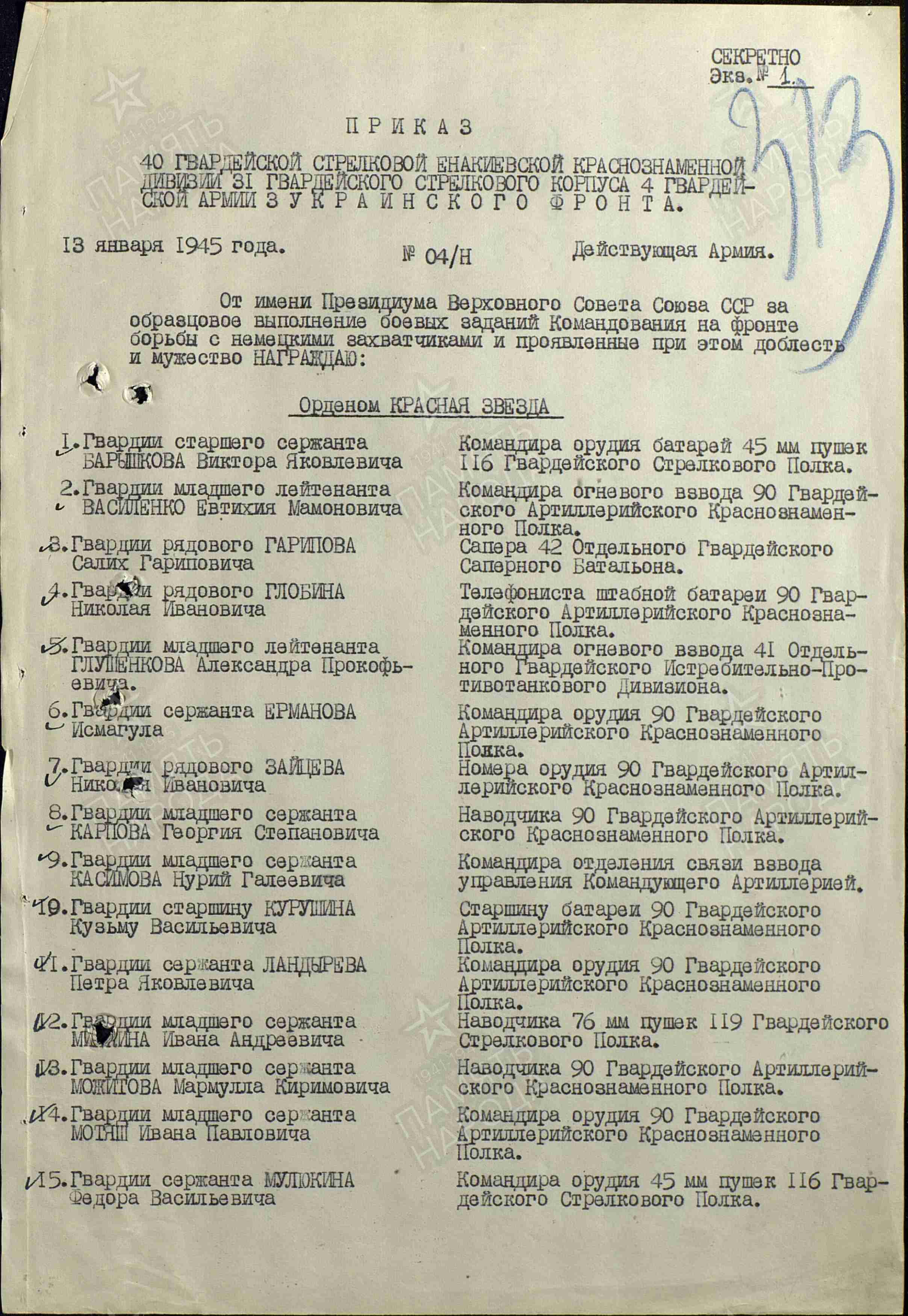Сведения об участнике войны получены из архива Музея истории г.о. Отрадный