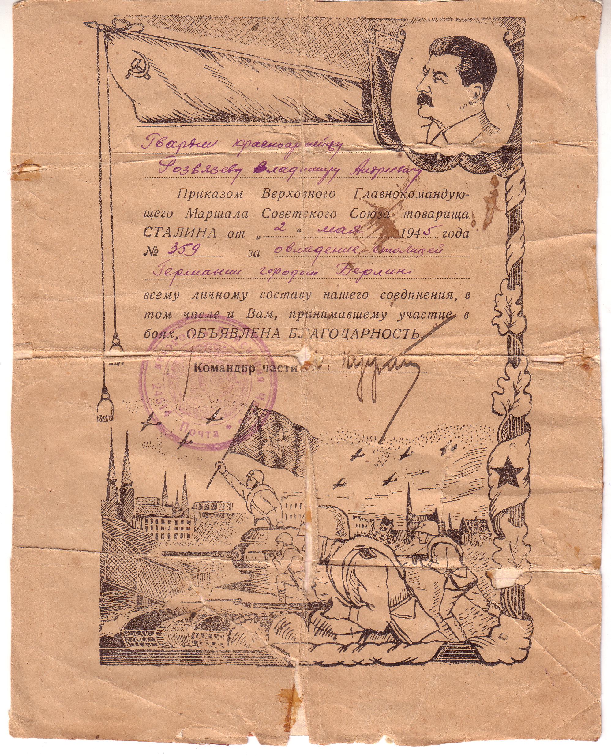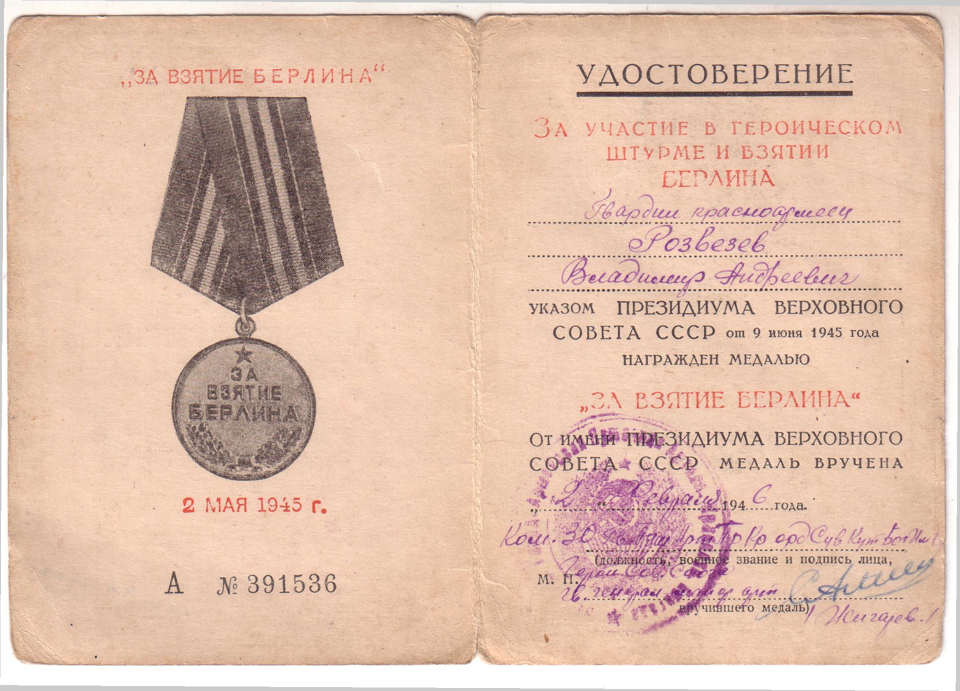 Материалы представлены женой Розвезевой Зинаидой Николаевной, г. Отрадный Самарской области