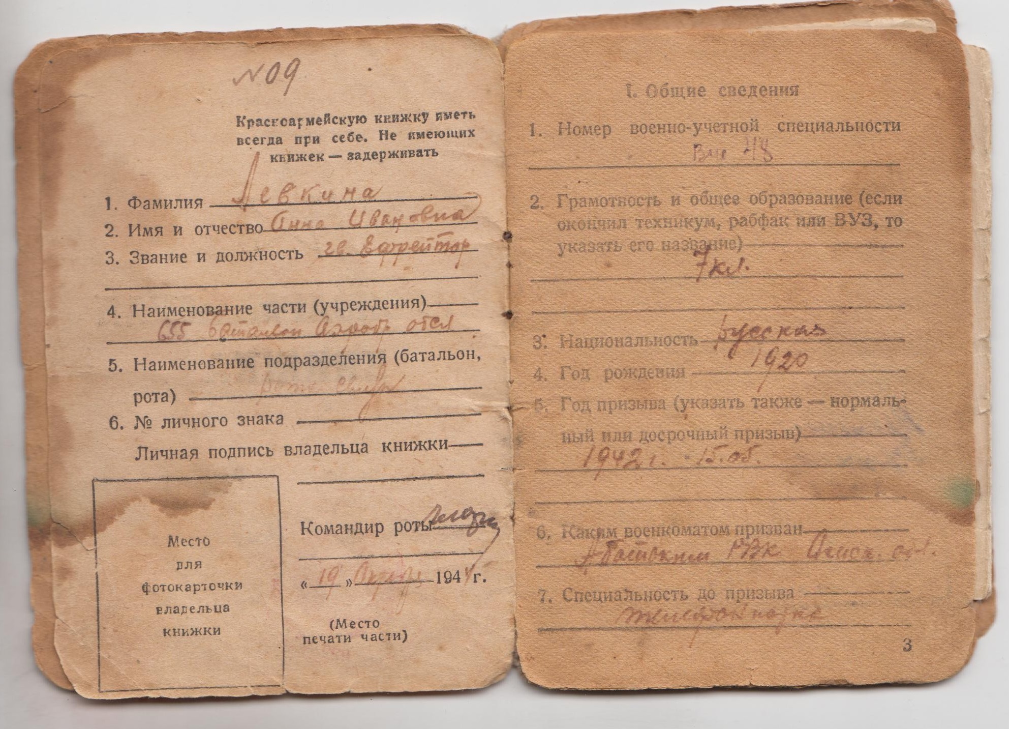 Анна Иванова (в девичестве Лёвкина) родилась 1 июля 1920 года в селе Абатское (ныне село входит в состав Тюменской области). Выросла в крепкой, работящей семье, которую в 1938 году раскулачили. Окончила 7 классов средней школы. До начала Великой Отечественной войны получила специальность телефонистки.