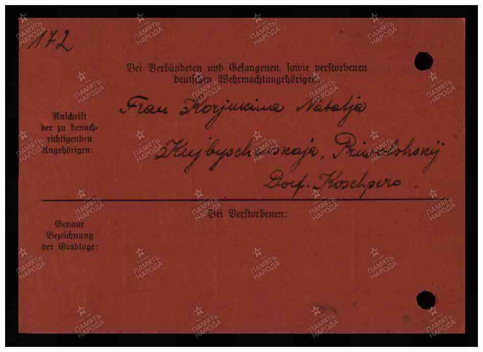 В ходе упорных ожесточенных боев наши войска перемалывали живую силу и боевую технику противника. Но враг был еще силен, не считаясь с большими потерями, бросая все новые и новые силы, немцы продвигались вперед. Ряды защитников таяли, у нас не хватало патронов, кончилось продовольствие, но мы выполняли приказ Сталина "Ни шагу назад". Не смотря на наше героическое сопротивление силы оказались слишком неравными и больных и израненные бойцы попали в плен. Во время боевых действий попал в плен под Ярцево и рядовой А.О. Корюкин.