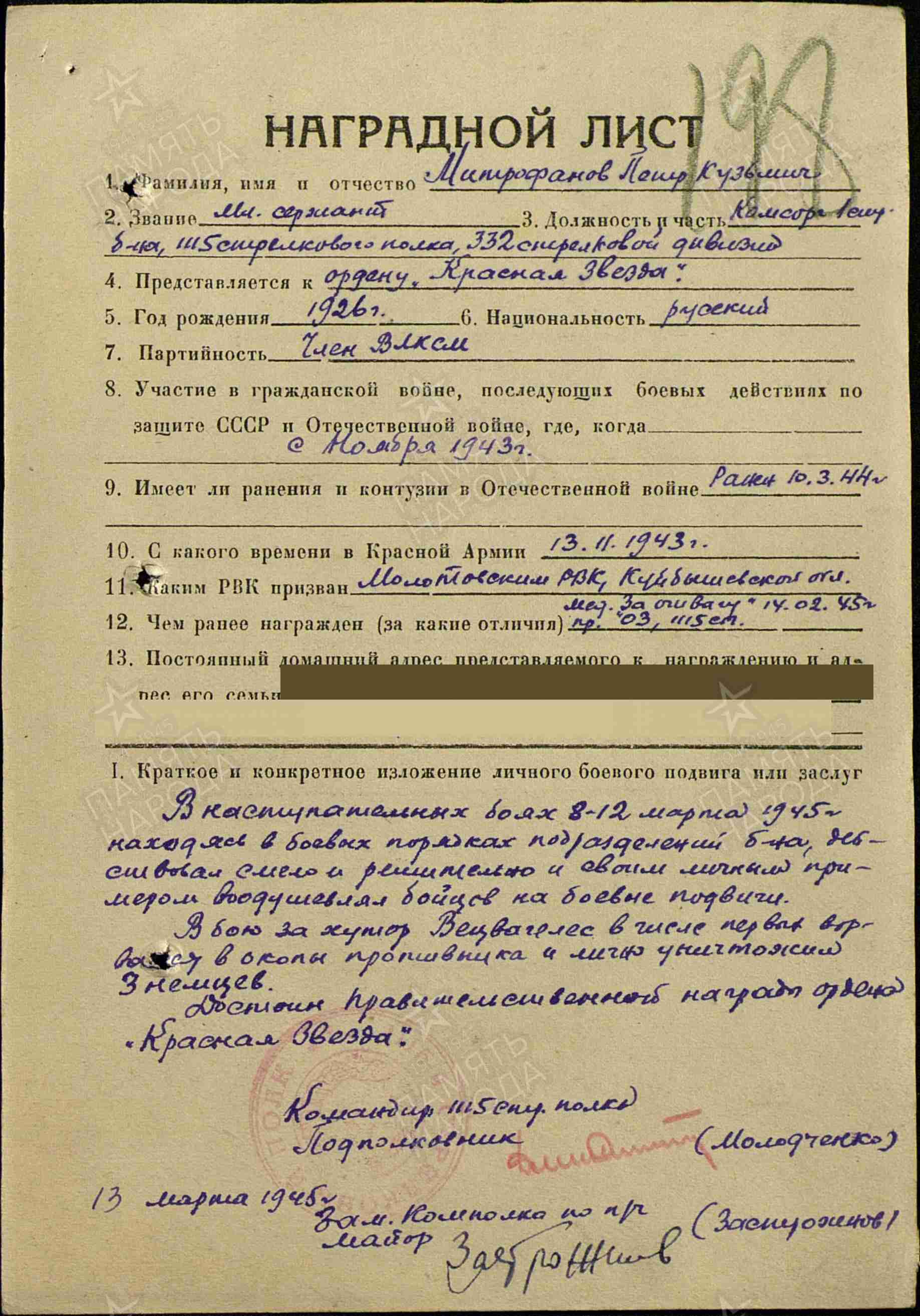 Материалы предоставила Васильцова Валентина Ивановна (друг семьи), с. Сосновый Солонец Ставропольского района Самарской области