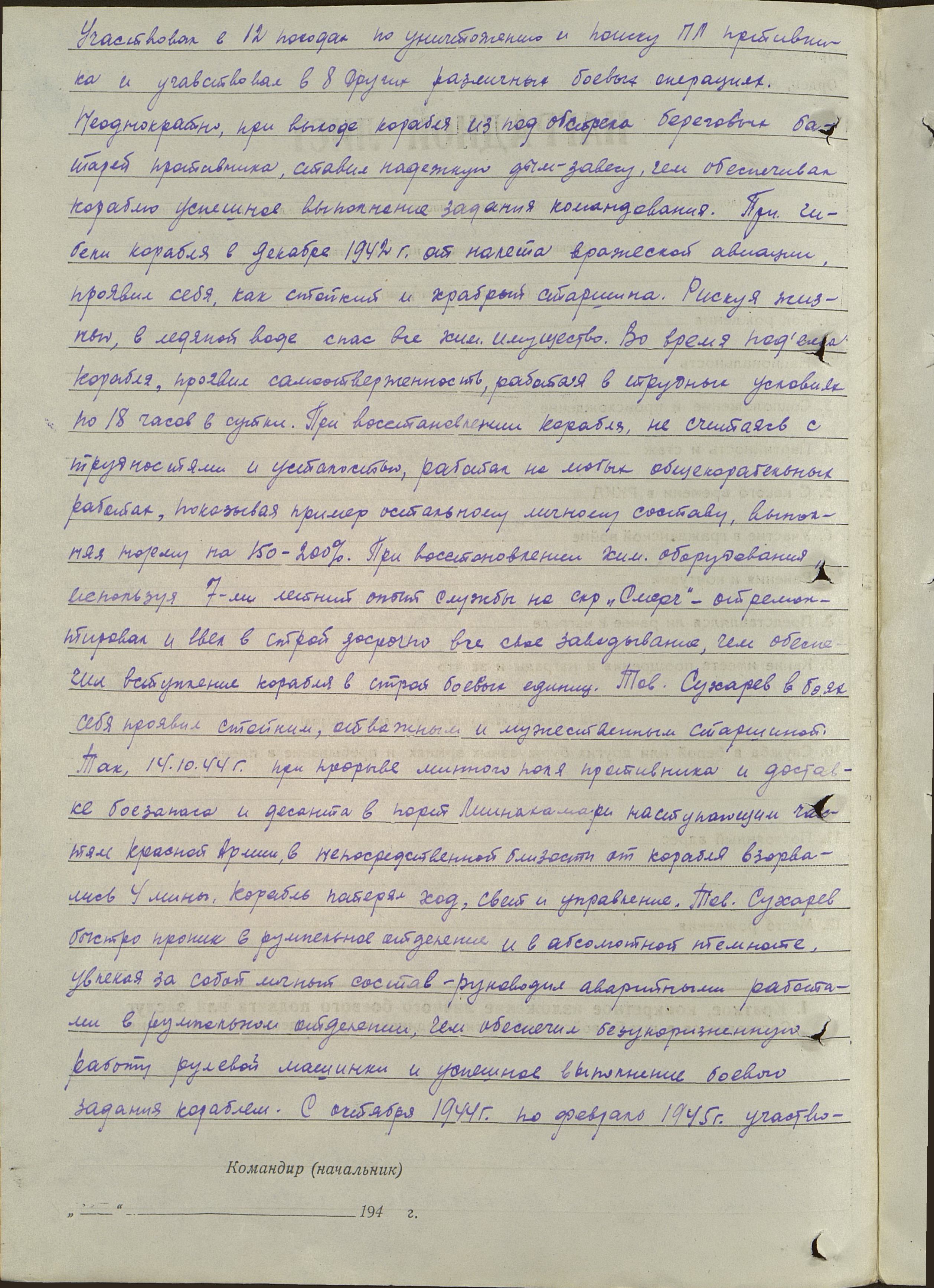 По информации из краснофлотской книжки участвовал: