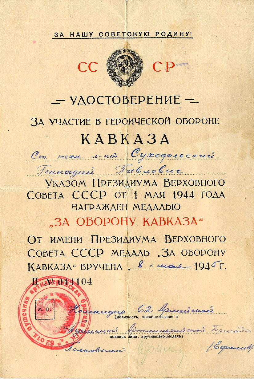 В сентябре 1942 года в составе 45 армии 337 Гаубичного артиллерийского полка в составе Северной группы войск Закавказского фронта участвовал в боях с немецкими захватчиками под Владикавказом и далее прошёл с войсками Северо-Кавказского фронта до станицы Красноармейской и Анастасиевской. С июня 1943 года участвовал в боях в составе 62 Пушечной артиллерийской бригады 56 армии Северо-Кавказского фронта под Крымской и далее до косы Чушки на Таманском полуострове. Затем в составе Приморской армии из-под Керчи прошёл до Севастополя. После взятия Севастополя бригада была переброшена на Первый Белорусский фронт (в 69 армию). В составе Первого Белорусского фронта закончил войну в предместье Берлина.
