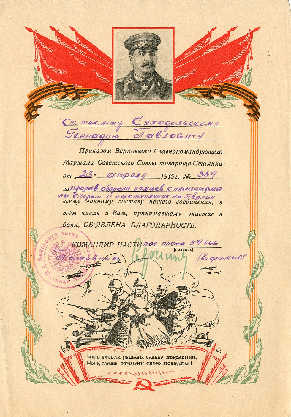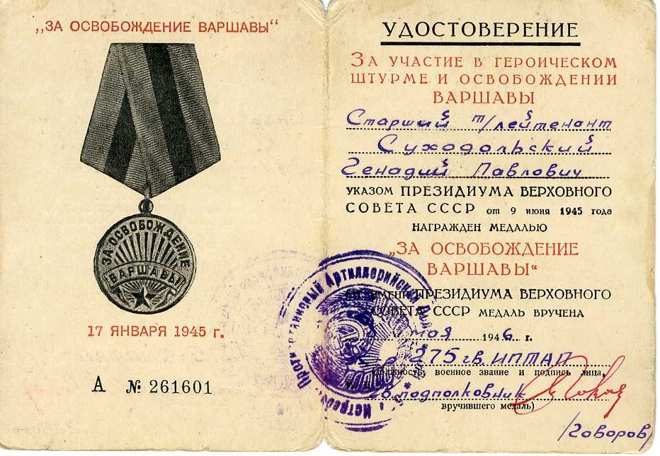 Геннадий Суходольский родился 26 февраля 1917 года в семье служащего в местечке Уречье Слуцкого района Бобруйской области (Белоруссия). С 1924 по 1932 год учился в школе, семилетку окончил в 1932 году. В этом же году поступил в Слуцкую профтехническую школу, которую окончил в октябре 1933 года и получил специальность слесаря 4-го разряда. После профтехшколы работал слесарем - инструментальщиком в совхозе имени "10-летия БССР" и в 1934 году в феврале уволился по собственному желанию, переехал в Крым. Поступил трактористом в совхоз № 2 Крымкоопинсоюза. С апреля 1936 года по сентябрь работал в колхозе им. Будённого в станице Глачинская Краснодарского края рядовым колхозником. Из этого колхоза он поступил на 1 курс Майкопского механического техникума наркомлеса СССР, где и проучился до февраля 1940 года. Обучение не закончил, так как был призван Майкопским (Адыгейским) областным Военкоматом в ряды Советских Вооруженных сил. 2 февраля 1940 года он прибыл в 337 отдельный Гаубичный Дивизион РГК, где был зачислен в школу младших командиров. В сентябре 1941 года ему было присвоено звание младшего воентехника и получено назначение на должность командира ремонтного взвода. В 1942 году был назначен командиром парковой батареи.