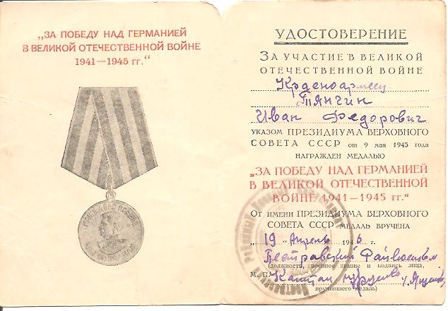 Данные предоставила жена сына, Тянгина Валентина Николаевна, с. Майское Пестравского района