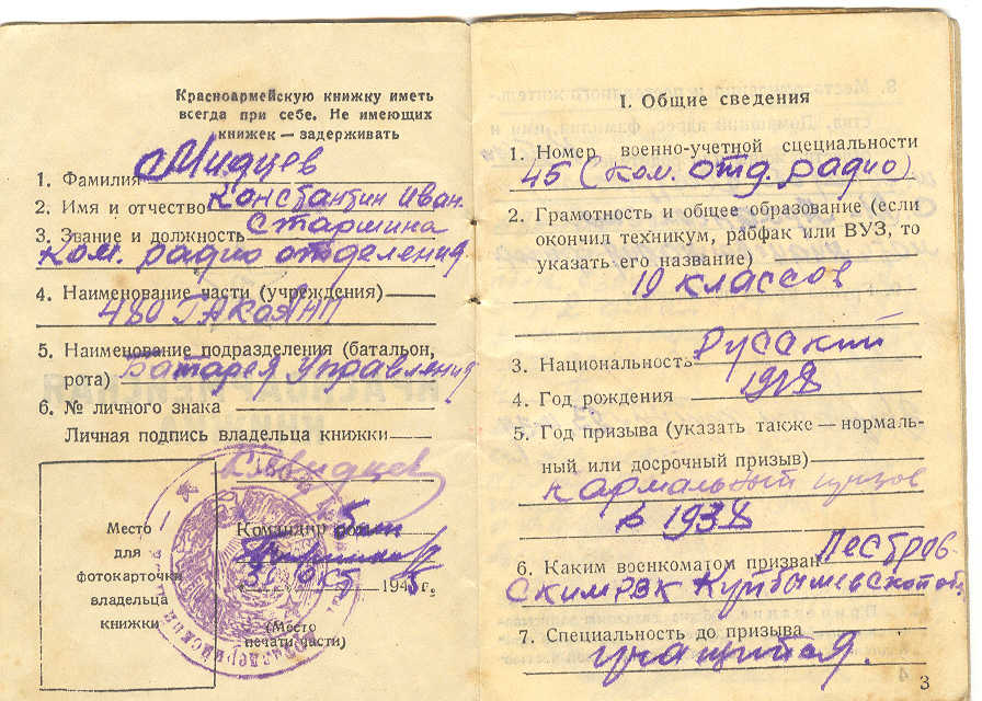 Фотографии и документы предоставил сын Мидцев Юрий Константинович, с. Малоархангельское Пестравского района Самарской области