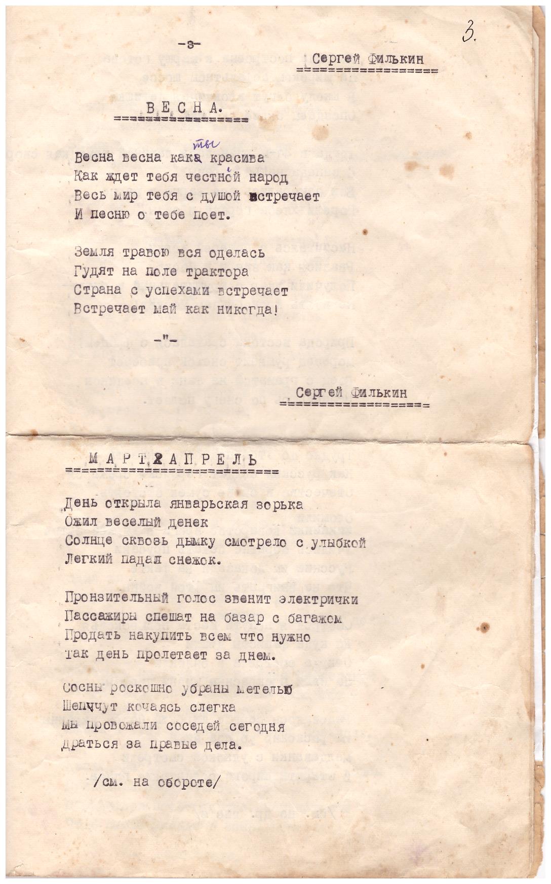 Стихи собственного сочинения Сергея Филькина периода 1945-1946 гг. (13 страниц)