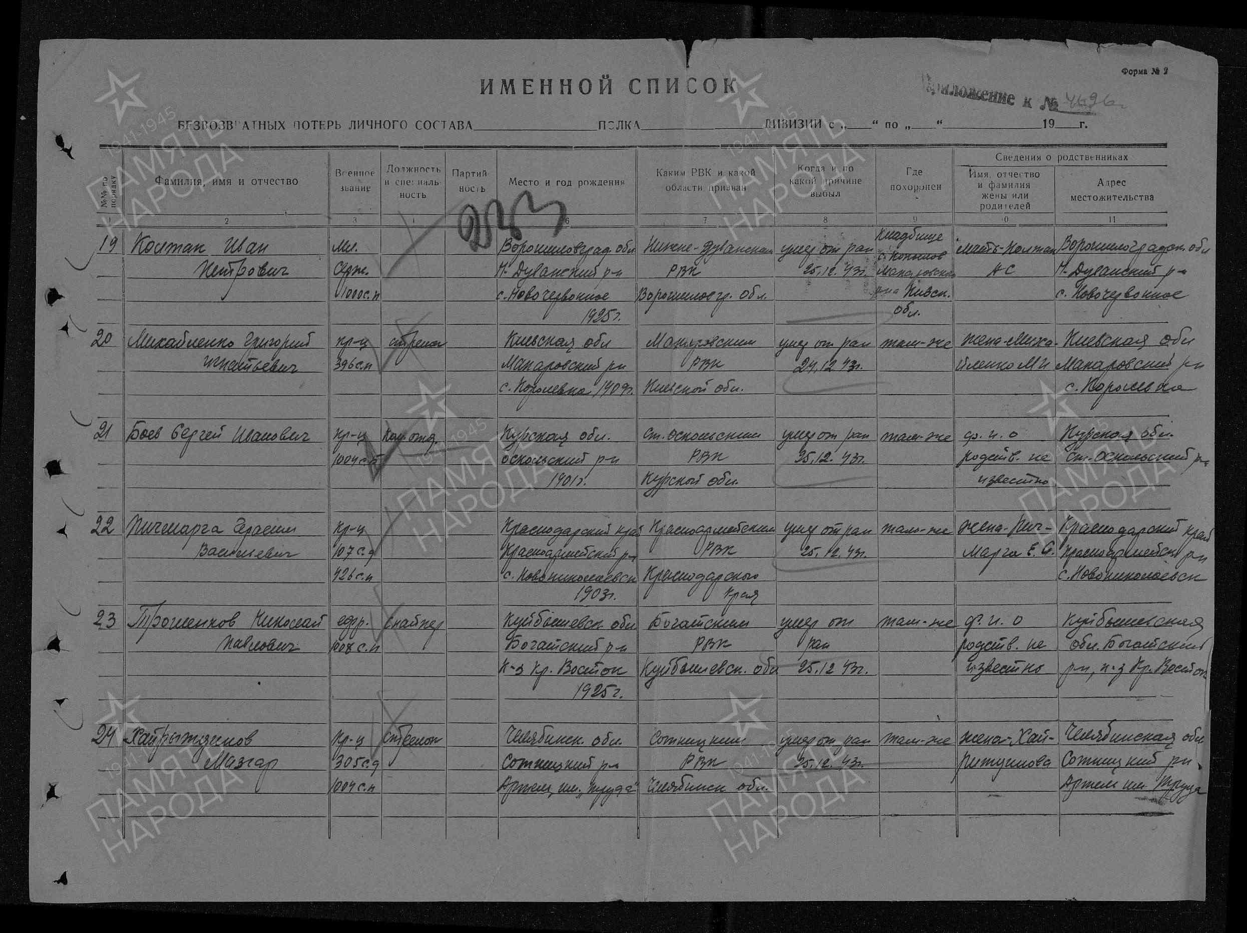 Сведения предоставила сестра Трошенкова Нина Павловна, пос. Центральный Богатовского района Самарской области