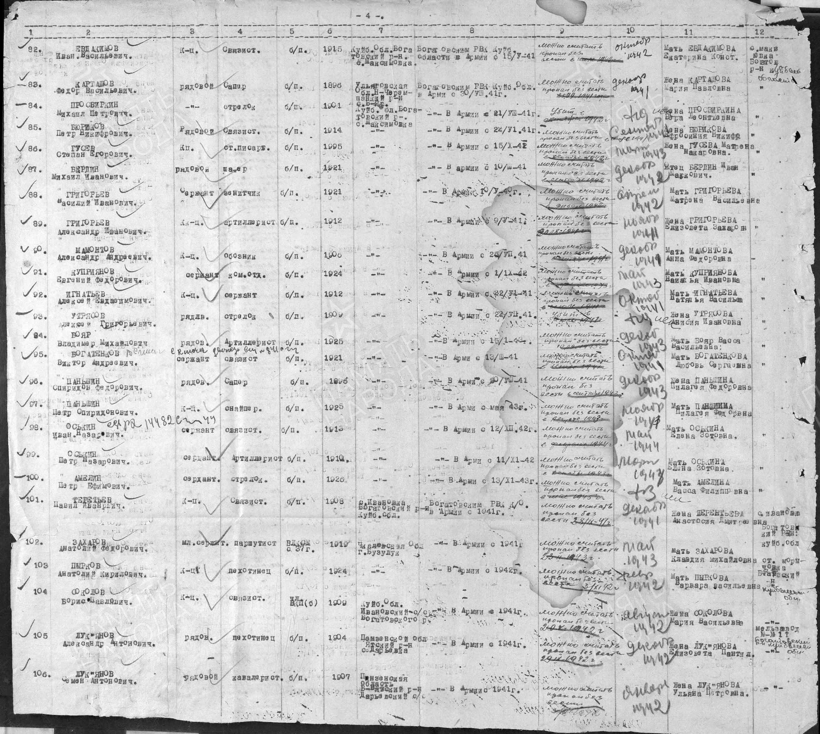 Сын Спиридона и Пелагеи Паньшиных - Пётр (1925 г.р.) был призван на фронт в мае 1943 года. Воевал, пропал без вести в ноябре 1943 года.
