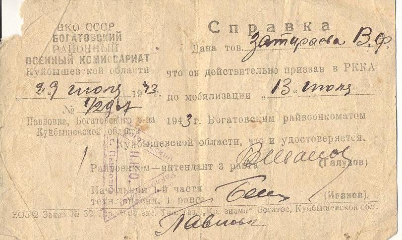 Документы из семейного архива предоставила дочь Карпова Любовь Васильевна, с. Богатое Самарской области. Информация дополнена по Книге Памяти Богатовского района