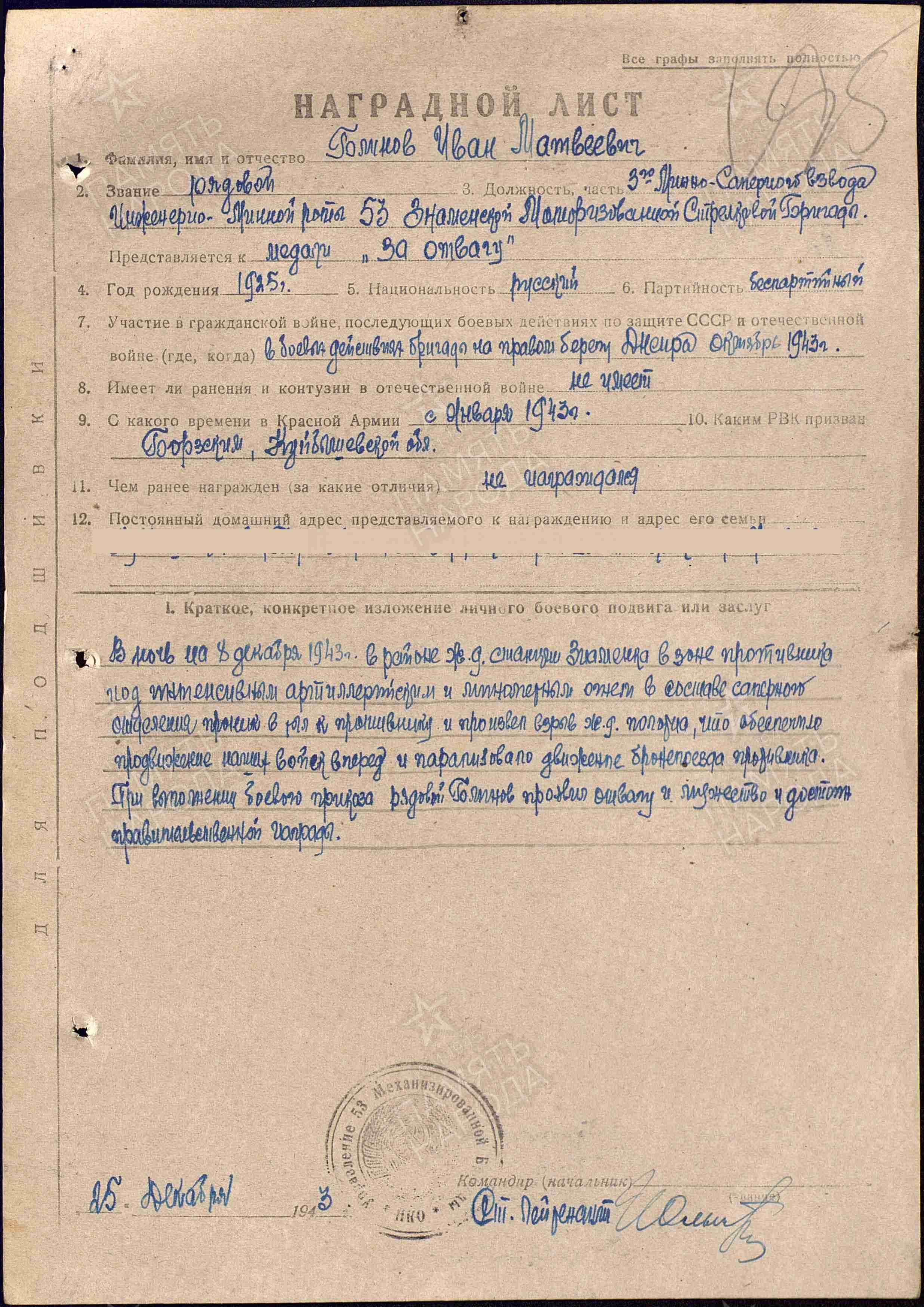 Родился 1925 года уроженец с. Гвардейцы Борского района Куйбышевской области.