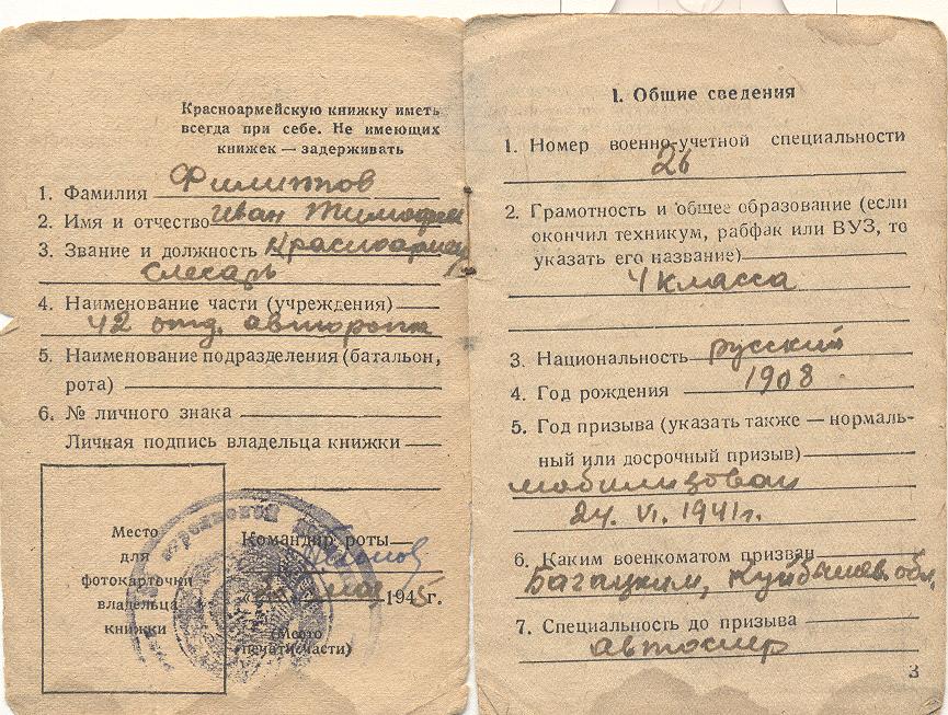 Документы и фотографии из семейного архива предоставила дочь Тимофеева Татьяна Ивановна, с. Богатое Самарской области