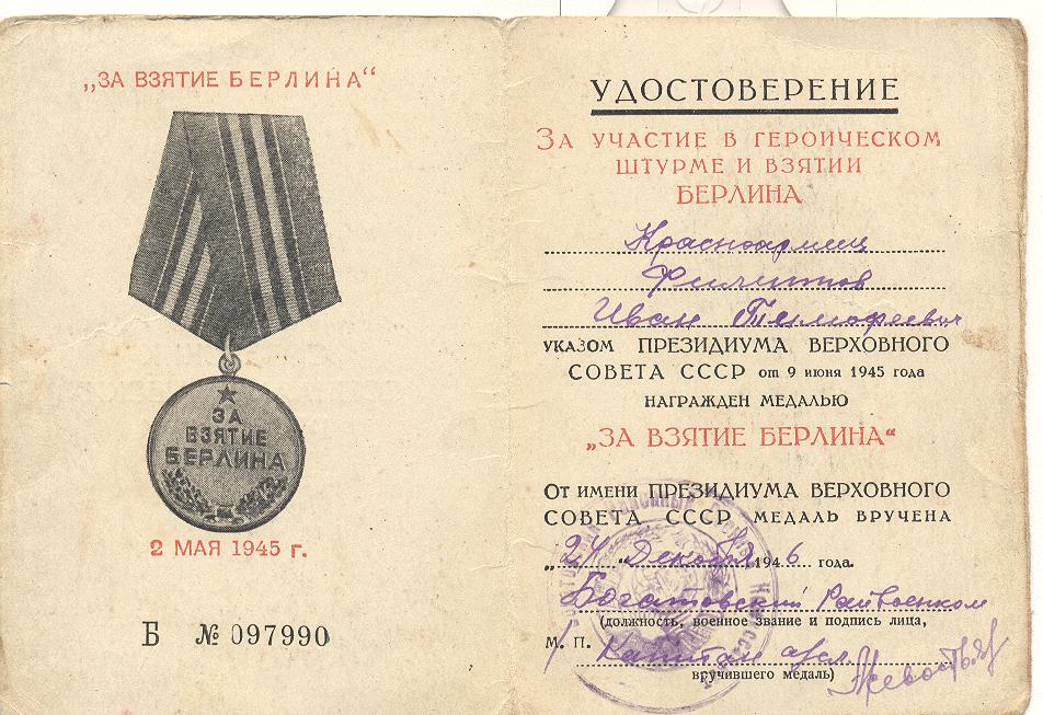 За успешное участие в освобождение городов Калиновичи, Варшавы, удачное форсирование Одера и взятие Берлина Иван Тимофеевич получил Благодарственные письма от Верховного Главнокомандующего Сталина. Демобилизовался Иван Тимофеевич 25 октября 1945 года.