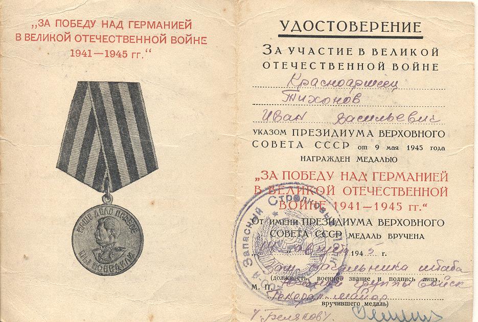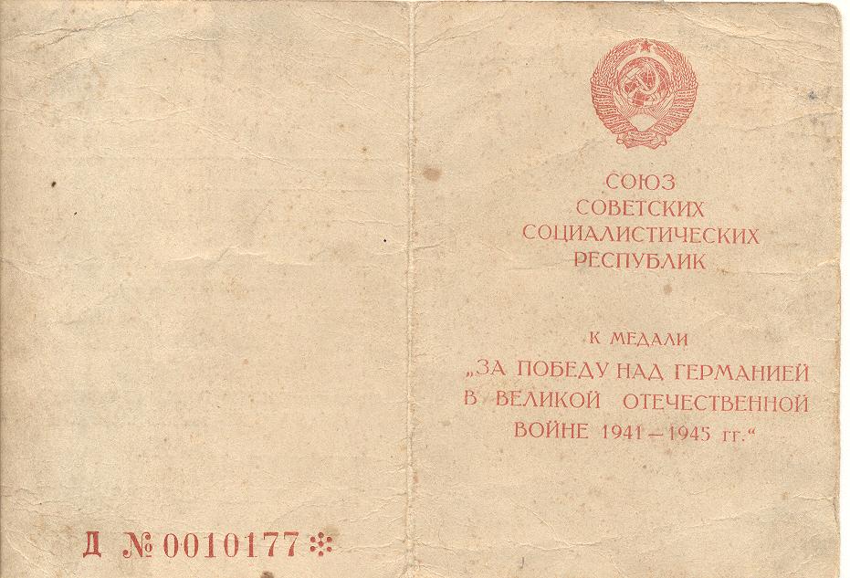 Награжден медалью «За победу над Германией в Великой Отечественной войне 1941-1945 гг.»