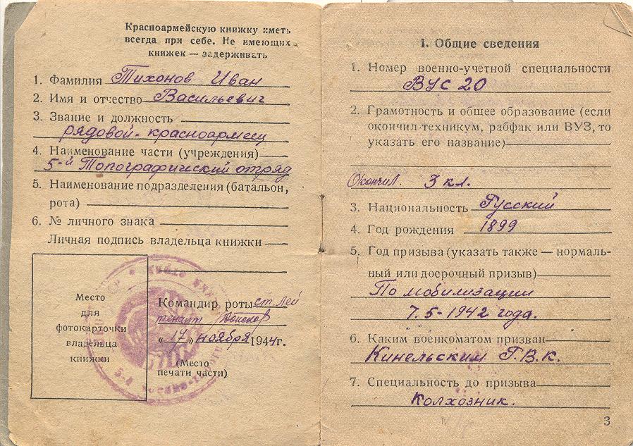 Родился в 1899 году в д. 2-я Филипповка Кинельского района (так указано в Красноармейской книжке). Очень долго не мог попасть на фронт, была бронь. Он работал председателем колхоза «Красный Маяк».