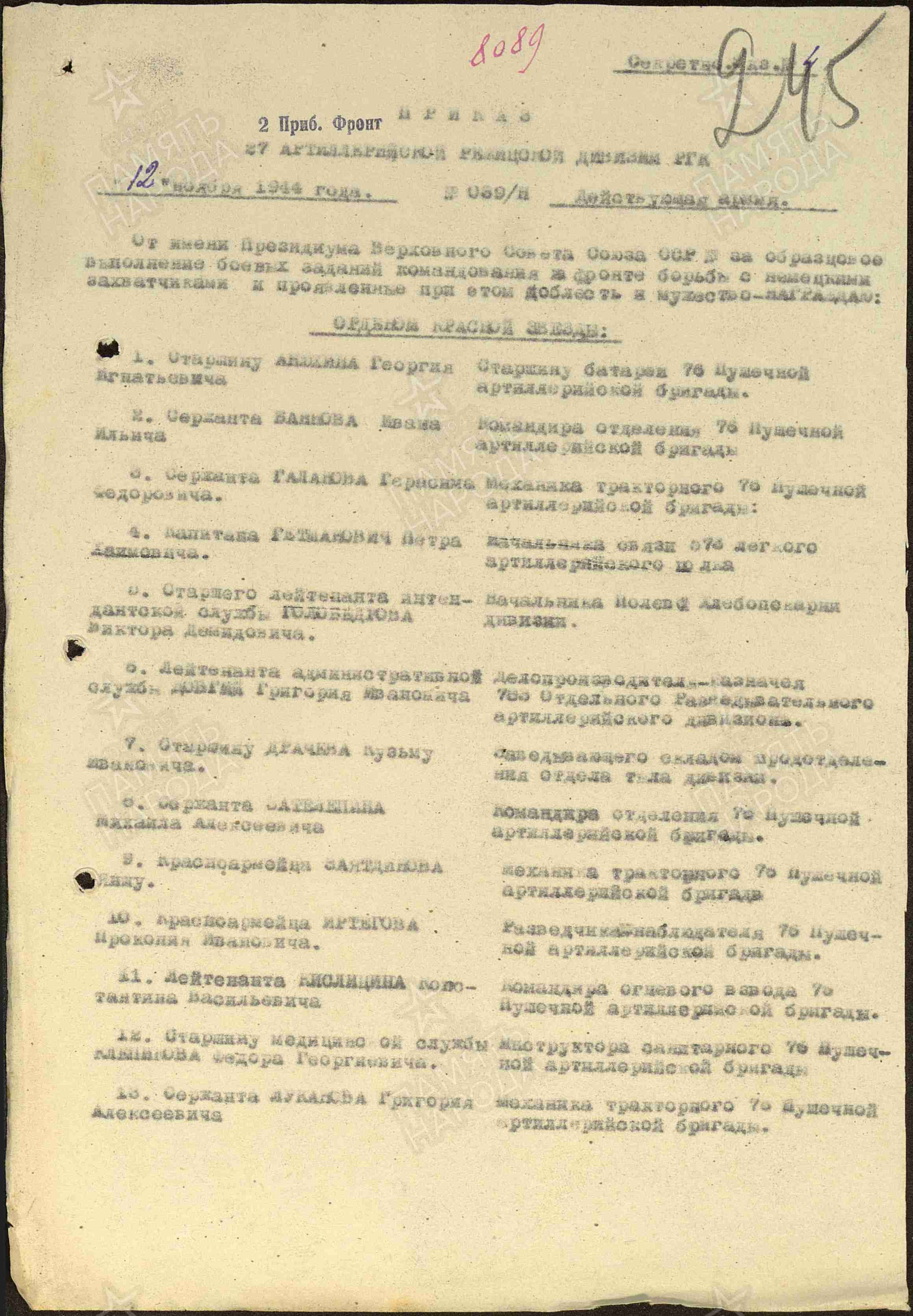 Освобождал Брянск, Белоруссию, Ригу, до самой Пруссии дошел. Через год после окончания войны вернулся домой.