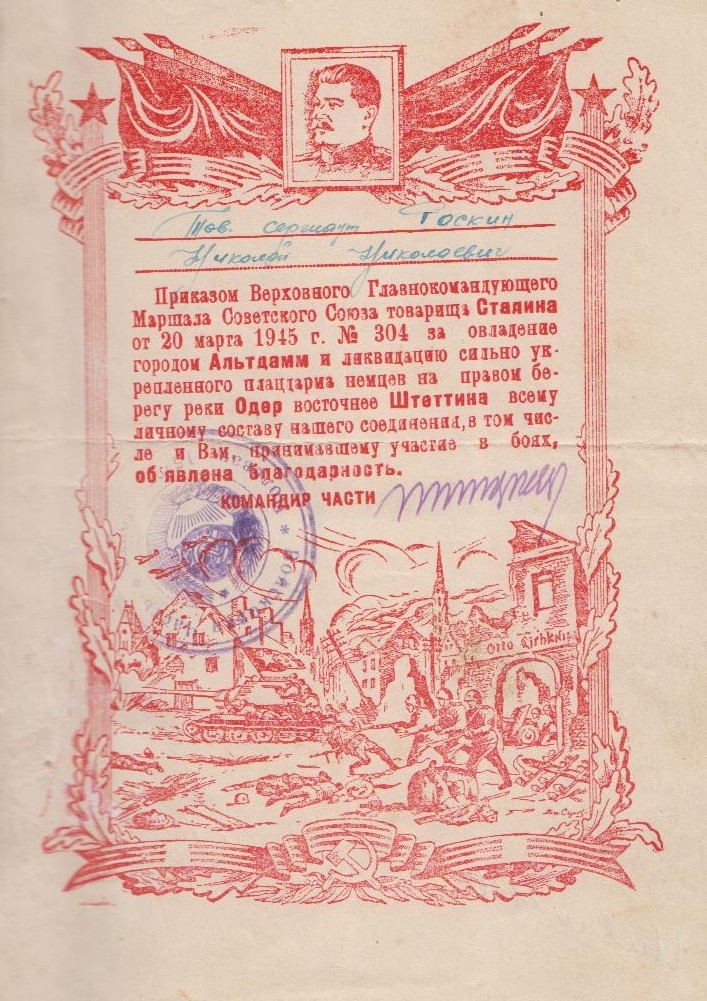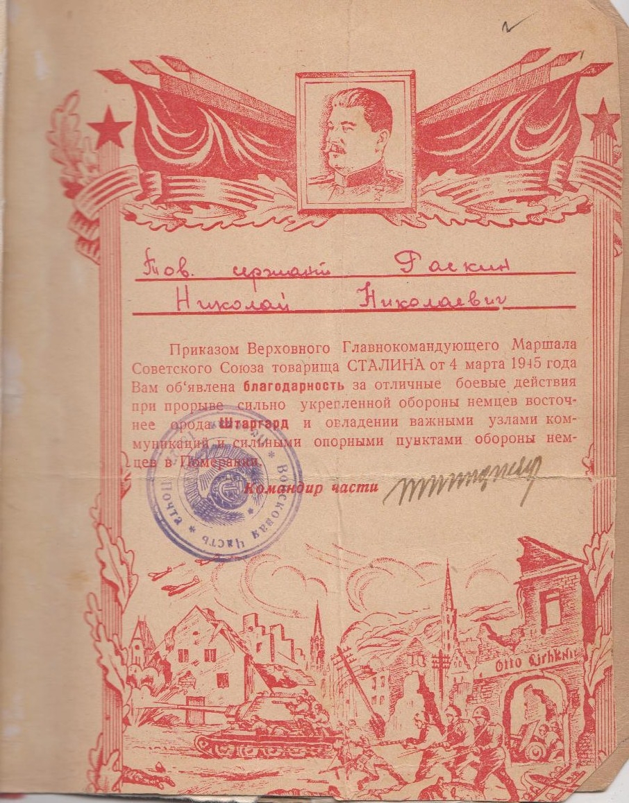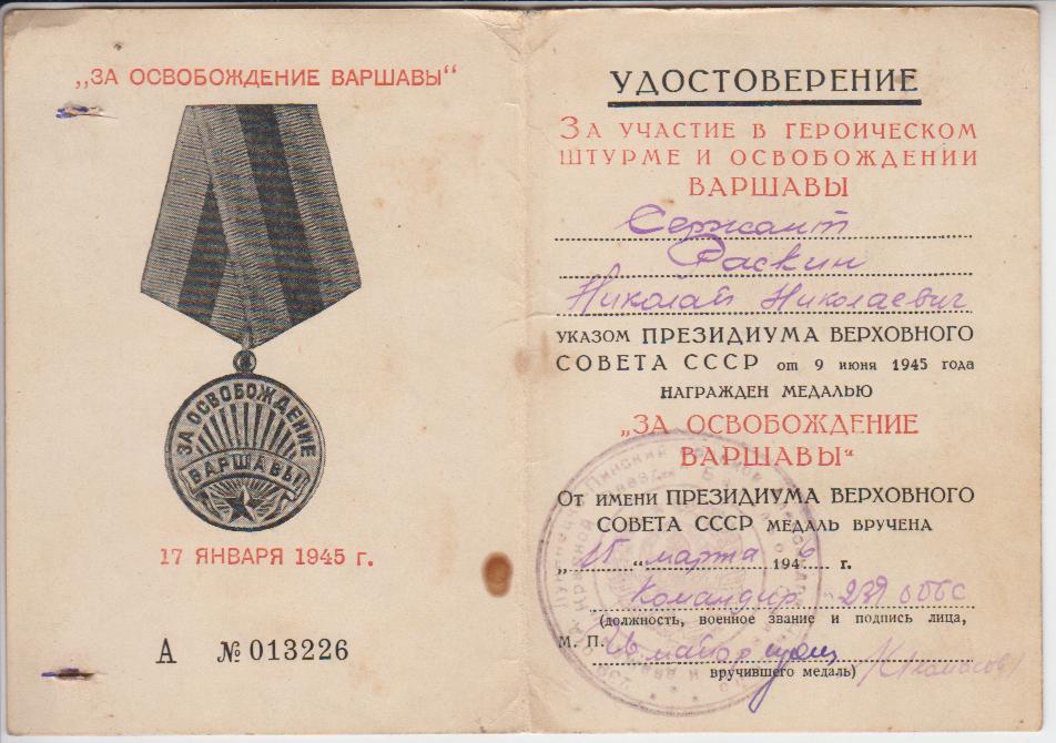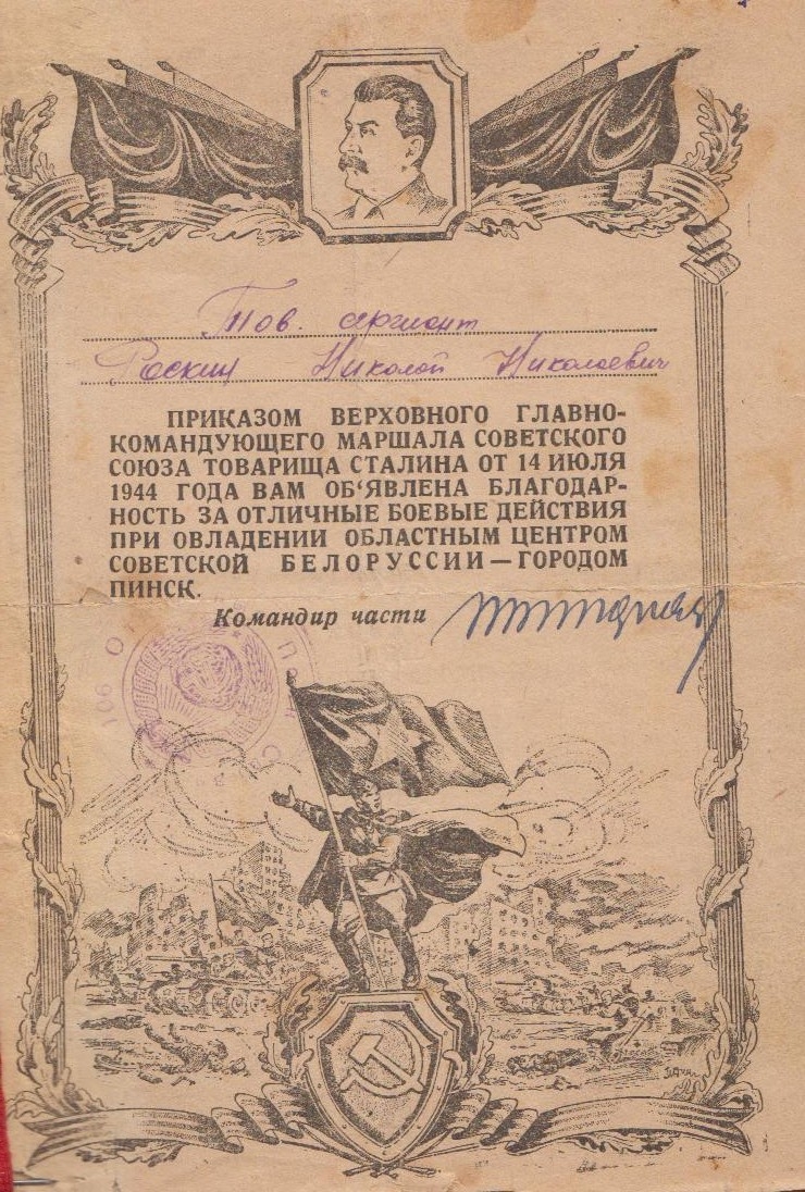 Сержант. Электромеханик радиороты 106-го Отдельного Пинского полка связи. В военных действиях участвовал с 18.03.1942 г. Член ВКП (б) с 1944 г. За добросовестное отношение к порученному делу, отличное содержание матчасти, выполнение заданий командования Приказом командира 106 ОПС 61 Армии 1-го Белорусского фронта инженер-подполковника Позднякова награжден медалью "За боевые заслуги" (1944 г.). В период наступательных боев по прорыву обороны противника на р. Висла не допустил не одного случая перерыва радиосвязи по причине неполадок. Приказом командира ОПС полковника Позднякова награжден орденом Красной Звезды (май 1945 г.). Награжден нагрудным знаком "Отличный связист" (1943 г.).
