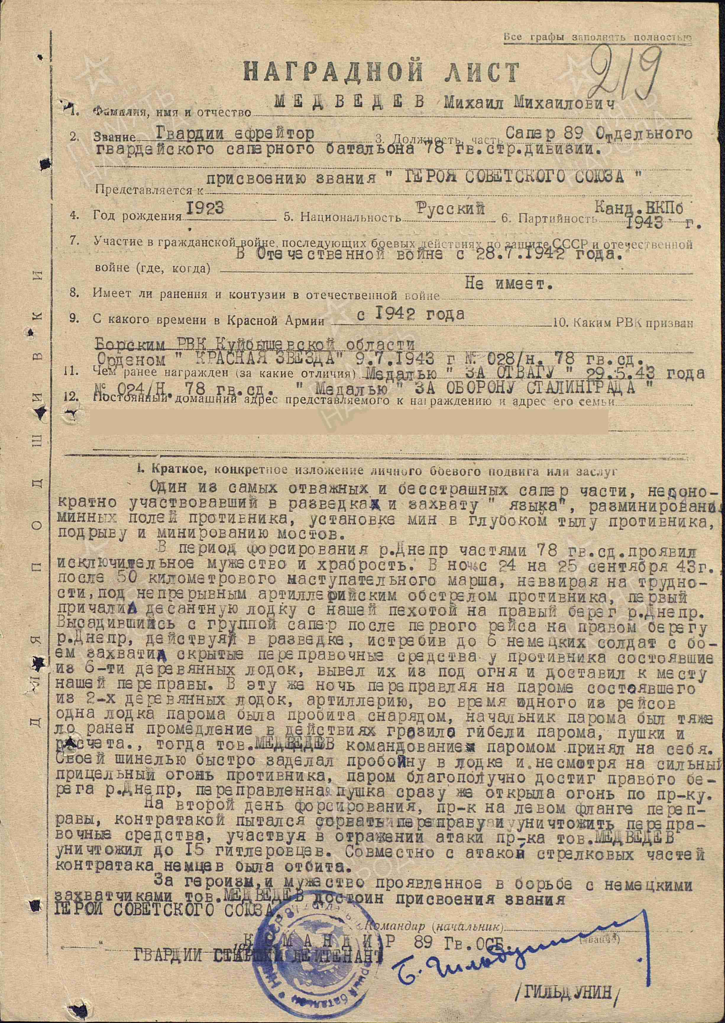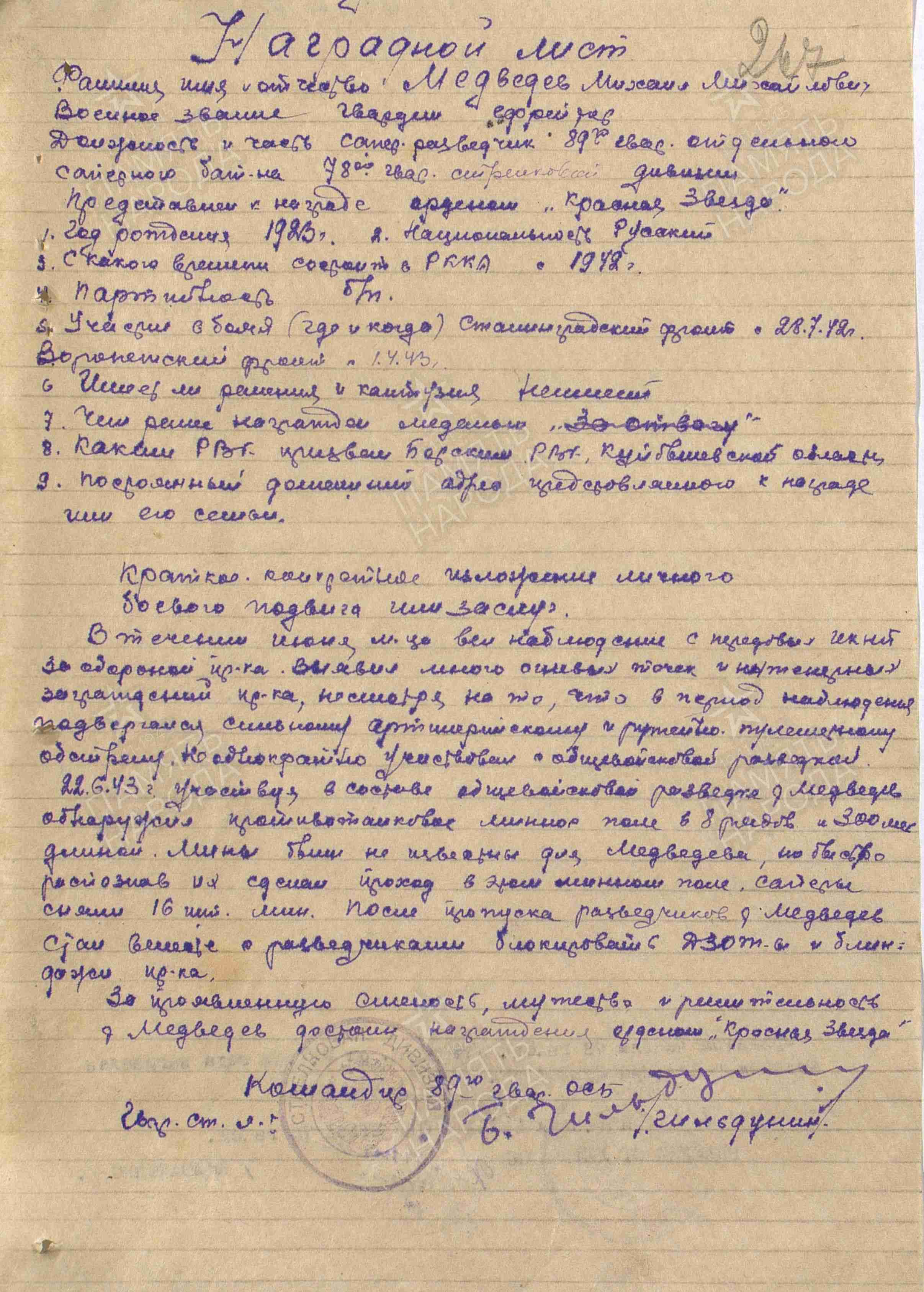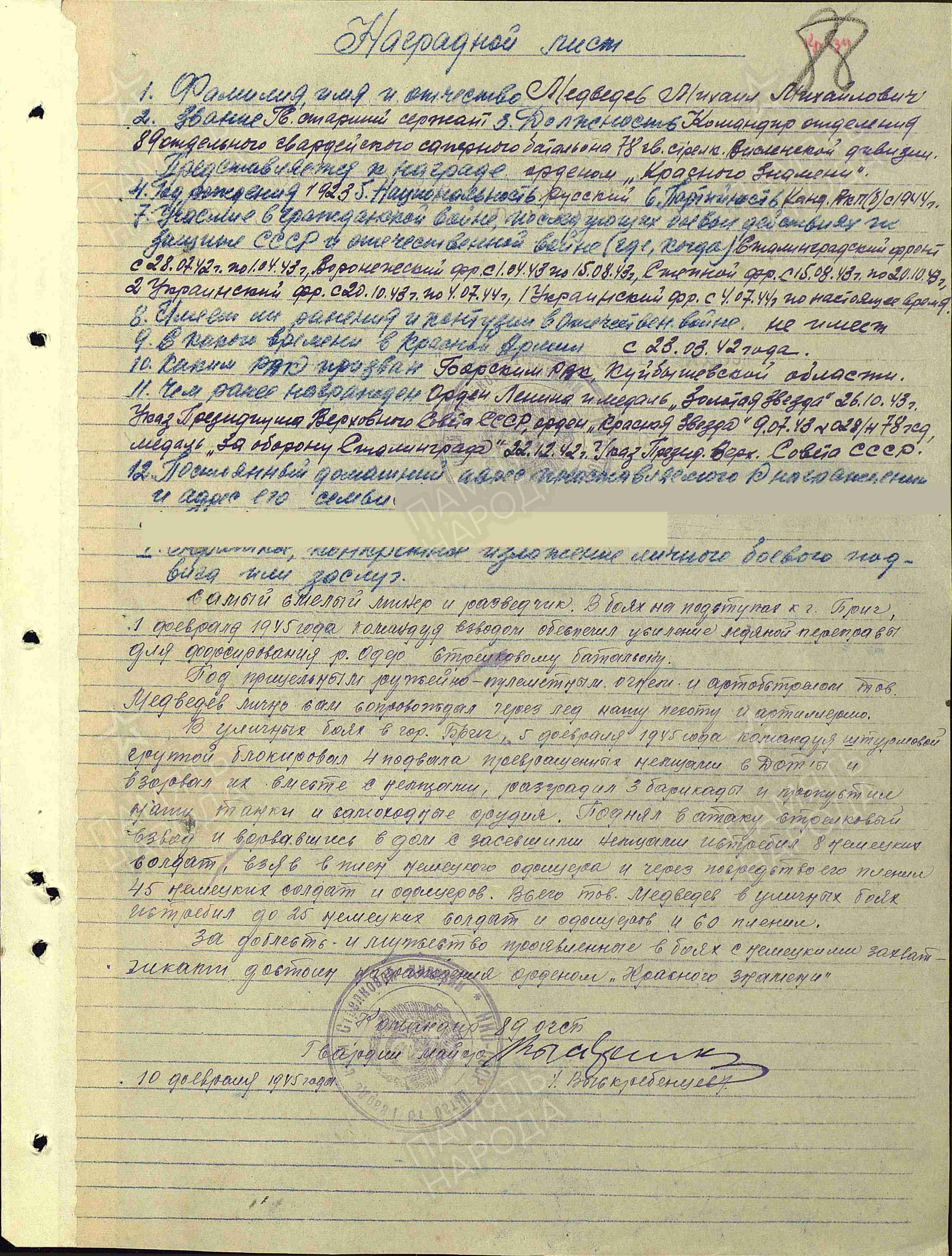 Михаил Медведев родился 15 августа 1923 года в селе Коноваловка Борского района.