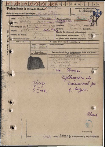 Уроженец деревни Багряш Исаклинского района, родился 24.01.1905 года. Был женат, жена Пелагея. Как следует из архивных документов Минобороны, попал в плен под Гомелем (дата пленения 18.08.1941 г.). Василий Никишин погиб 03 февраля 1942 года в немецком концлагере (шталаг VI C).