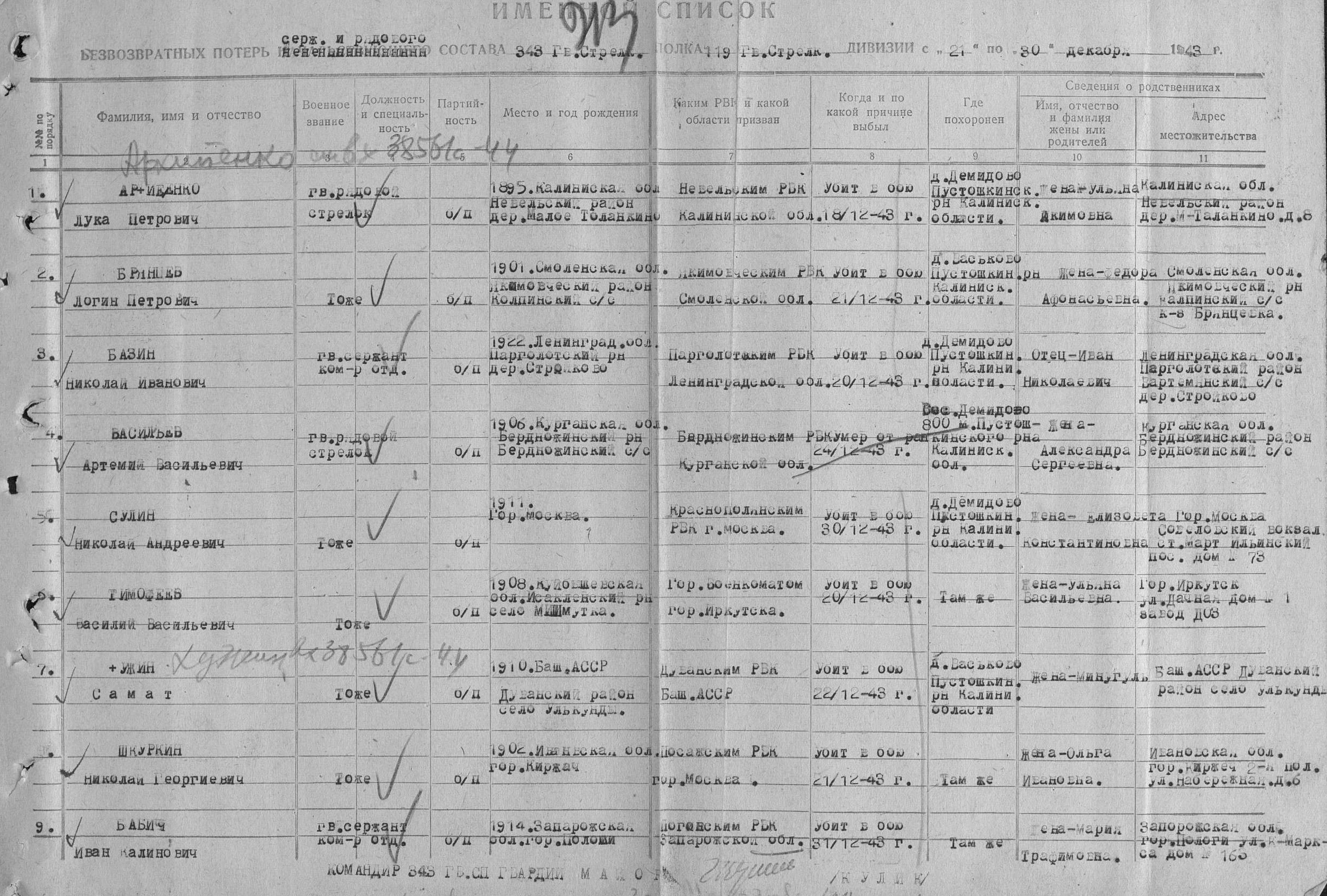 1908 года рождения, уроженец села Малое Ишуткино Исаклинского района. Рядовой, стрелок 119 стрелковой дивизии. Погиб в бою 20 декабря 1943 года, Первичное место захоронения: Калининская обл., Пустошкинский р-н, д. Демидово.