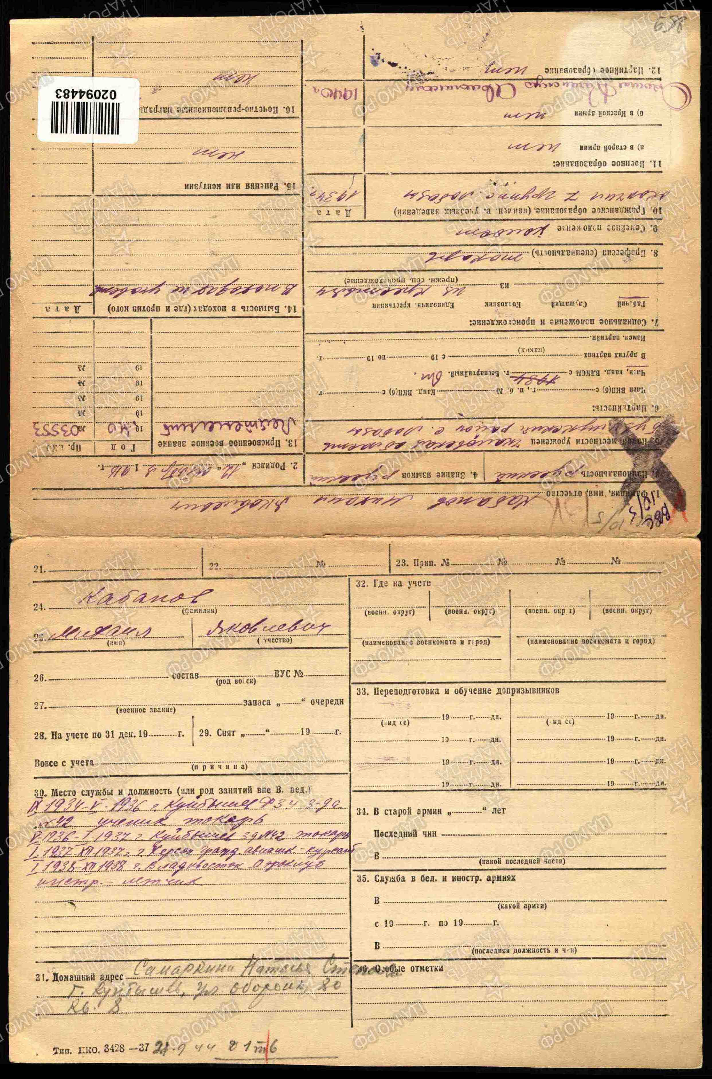 Его родной брат рядовой Василий Кабанов (1905 г.р.) пропал без вести в марте 1943 года (Ленинградский фронт). Последнее место службы рядового В.Я. Кабанова: Ленинградский ронт, ППС 121 часть 523.