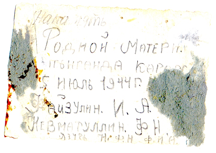 Иниат Ахмерович родился 1 сентября 1926 г. в Старокулаткинском районе Ульяновской области. В первые дни войны, приписав 2 года, Иниат явился в военкомат, но на фронт был призван Старокулаткинским РВК в 1943 году. Наименование воинской части: 1997 зенитный артиллерийский полк, пулеметная рота. С 5 февраля 1943 г. по 15 мая 1944 года был курсантом зенитно-артиллеристского полка, учился на шофера. Войну прошёл водителем грузовика. Был контужен. Демобилизовался 15 декабря 1946 года. На обороте фотографий фронтового периода есть имена двух его сослуживцев: Тямаев Т.Ю. Невматуллин Ф.Н.