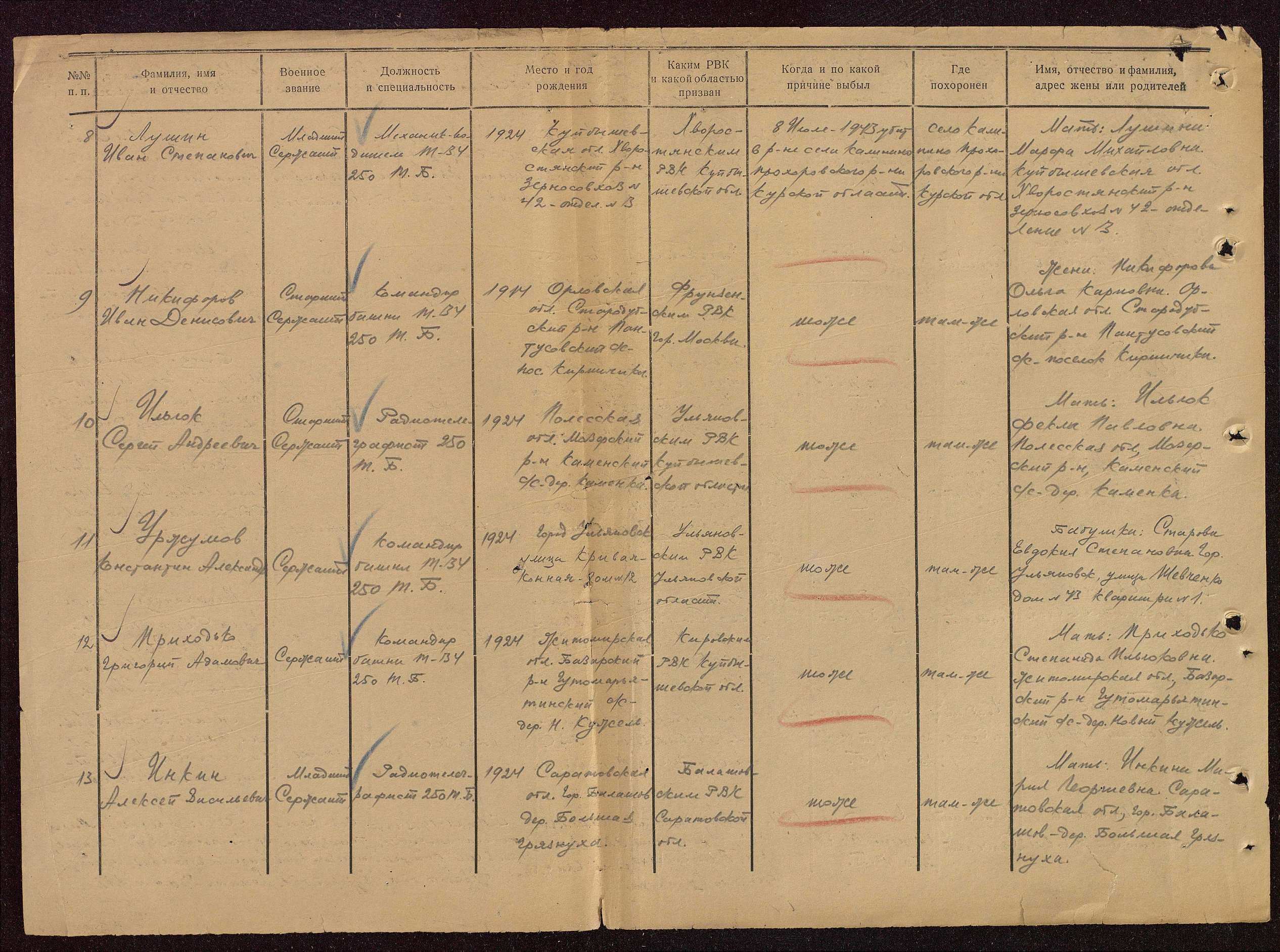 Иван Лушин родился в 1924 году. Воинское звание – младший сержант. Механик-водитель Т-34. Последнее место службы – Воронежский фронт, 20 гвардейская танковая бригада 250 танковый батальон. Погиб 8 июля 1943 года, похоронен в районе села Калинин Прохоровского района Курской области. Другой информации на сегодняшний день нет.