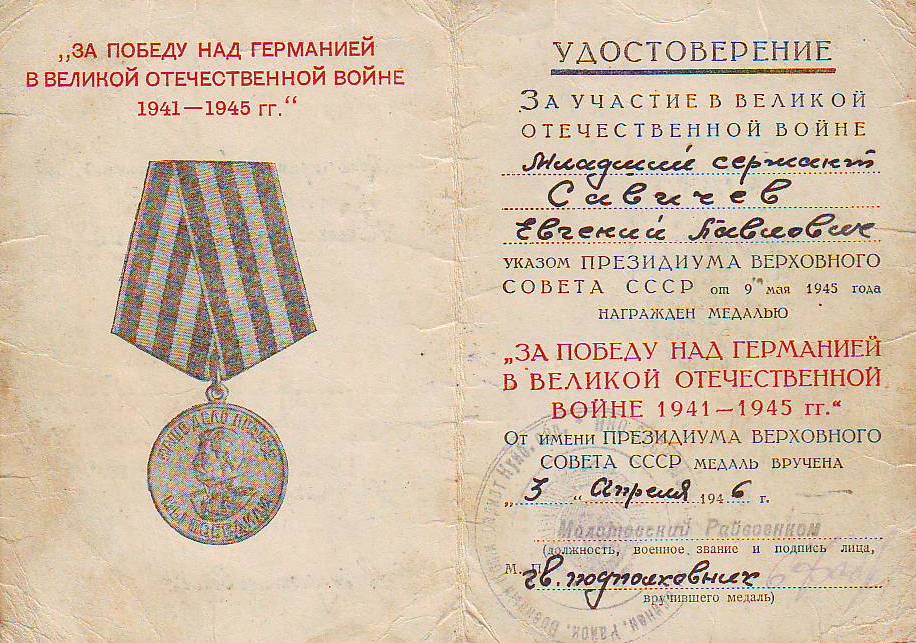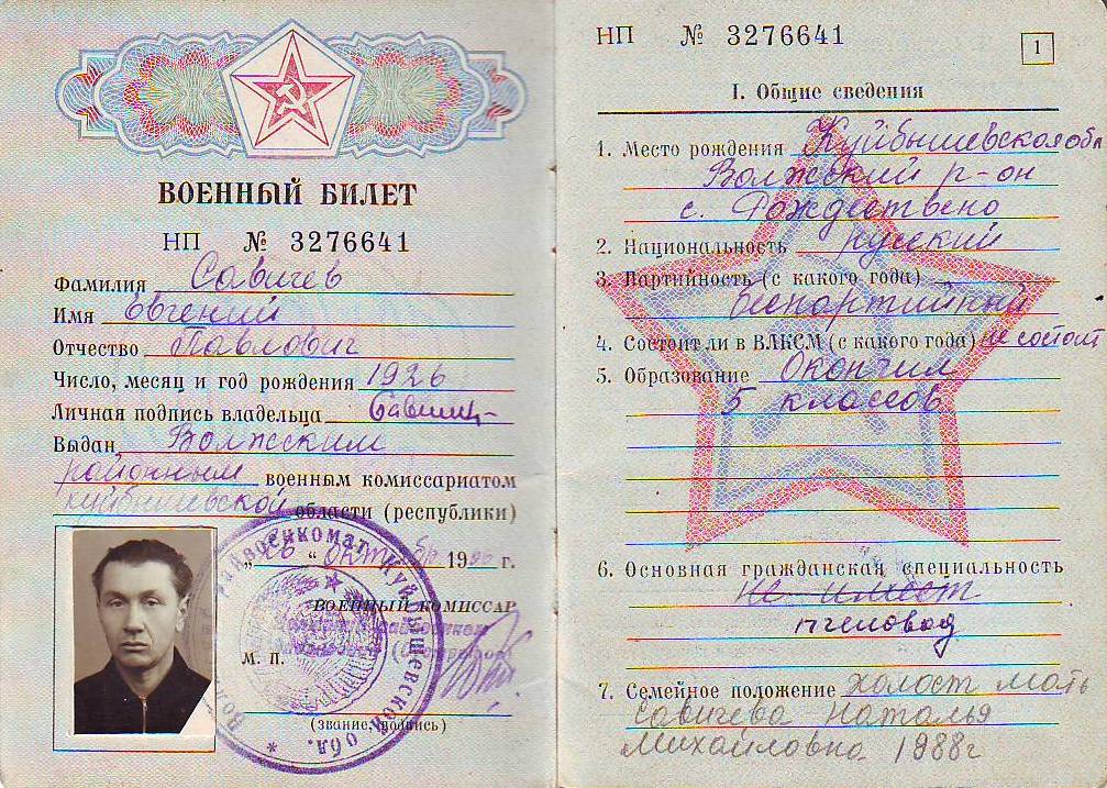 Родился 19 декабря 1926 г. в с. Усолье ныне Шигонского района (по другим данным, в с. Рождествено Волжского района) Самарской области. Окончил 5 классов. Призван на военную службу 15 ноября 1943 г. в возрасте 18 лет. Уже шла Великая Отечественная война. Савичев попал в учебный полк на станцию Барыш. Там он выучился на командира роты. А затем его направили на Белорусский фронт, в прорывной дивизион. В составе этого подразделения Евгений Павлович участвовал в освобождении Польши, Чехословакии, в боях в Восточной Пруссии. На передовой он воевал полгода. Был и командиром разведки, восстанавливал поврежденную связь. 5 января 1945 г. в Невеле его ранило в шею, плечо, голову, локоть. Операция за операцией, госпиталь за госпиталем. Так Евгений Павлович оказался в городе Фурманов Ивановской области. Оттуда и демобилизовался.