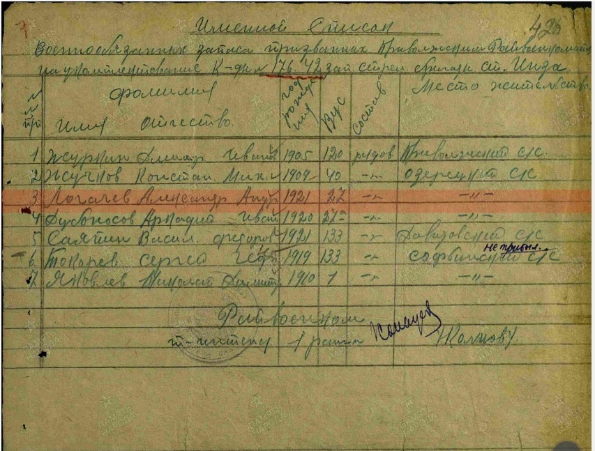 Логачев Александр Андреевич родился в селе Нижнеозерецкое Спасской волости Самарского уезда Самарской губернии в 1921 году.