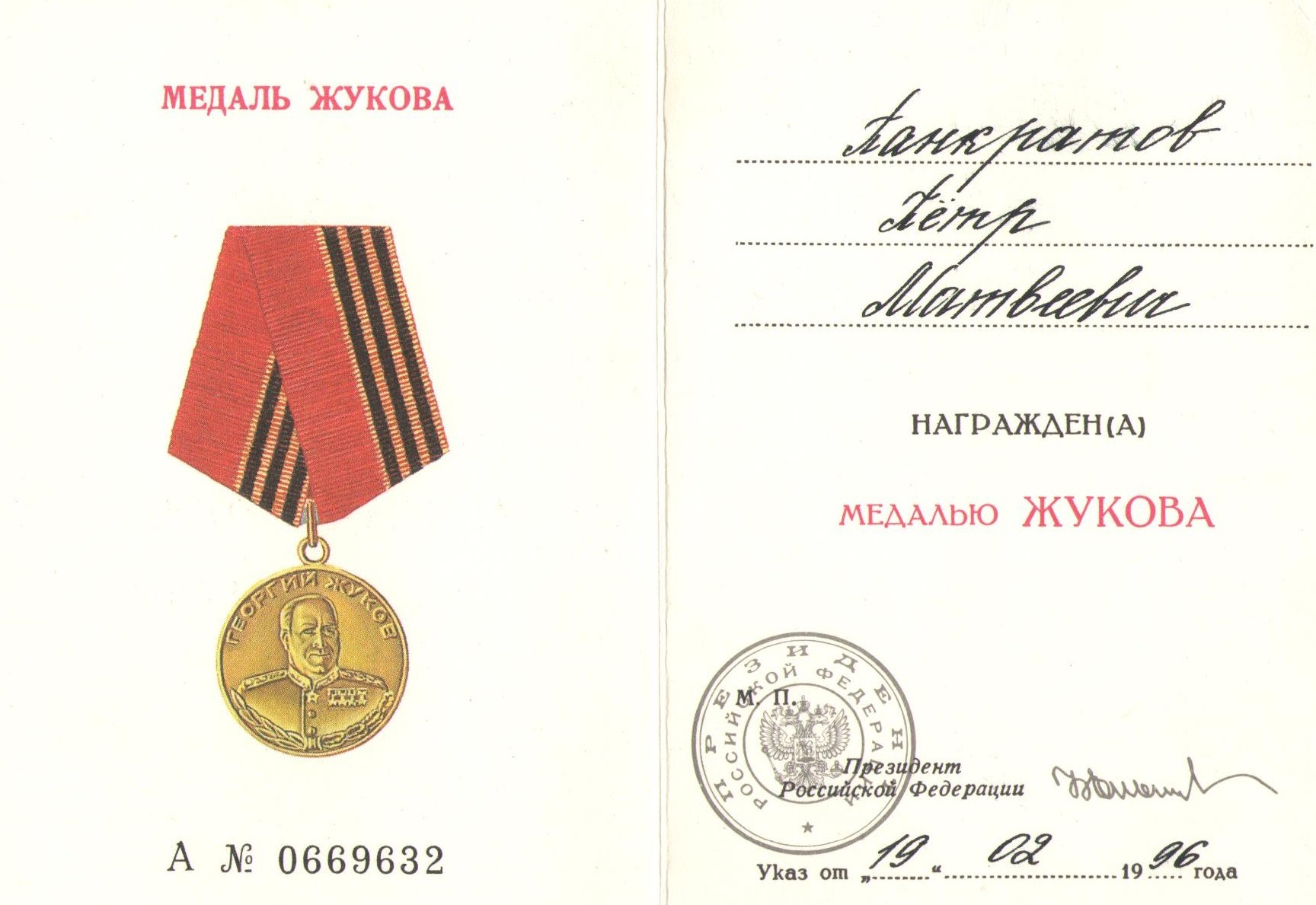 - медаль Жукова;