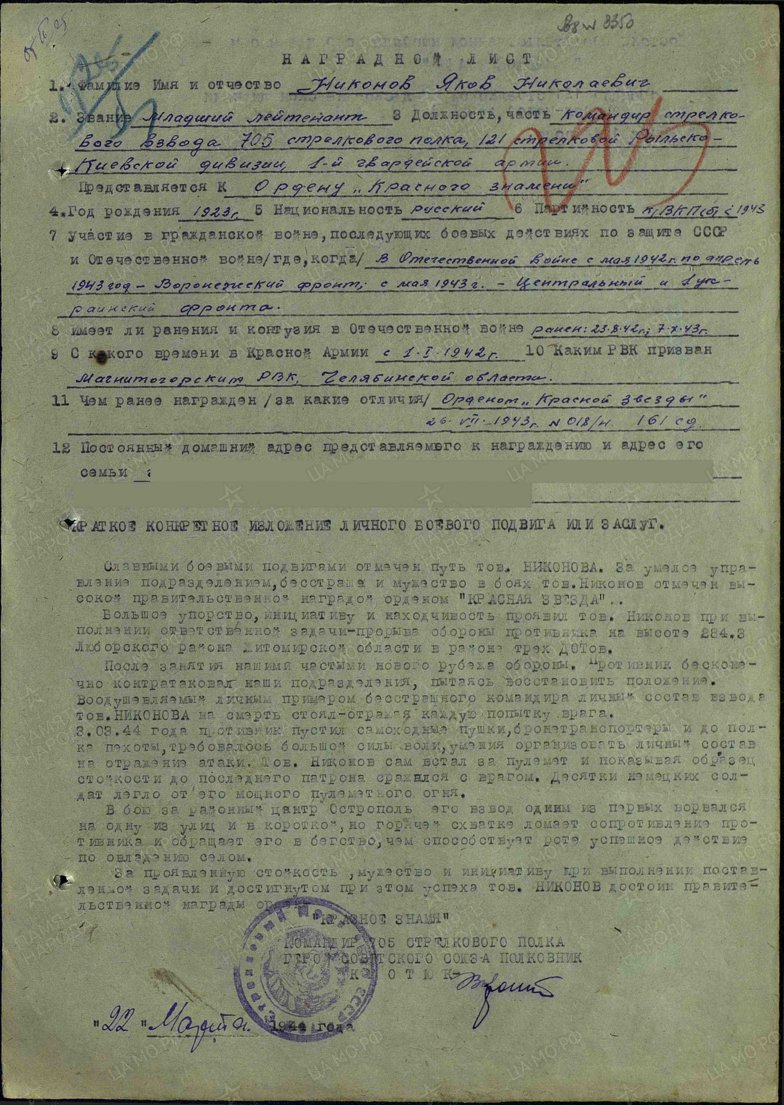 После тяжелого ранения в Карпатских горах в конце 1944 года Яков Николаевич был демобилизован и направлен на лечение. Долго восстанавливался.