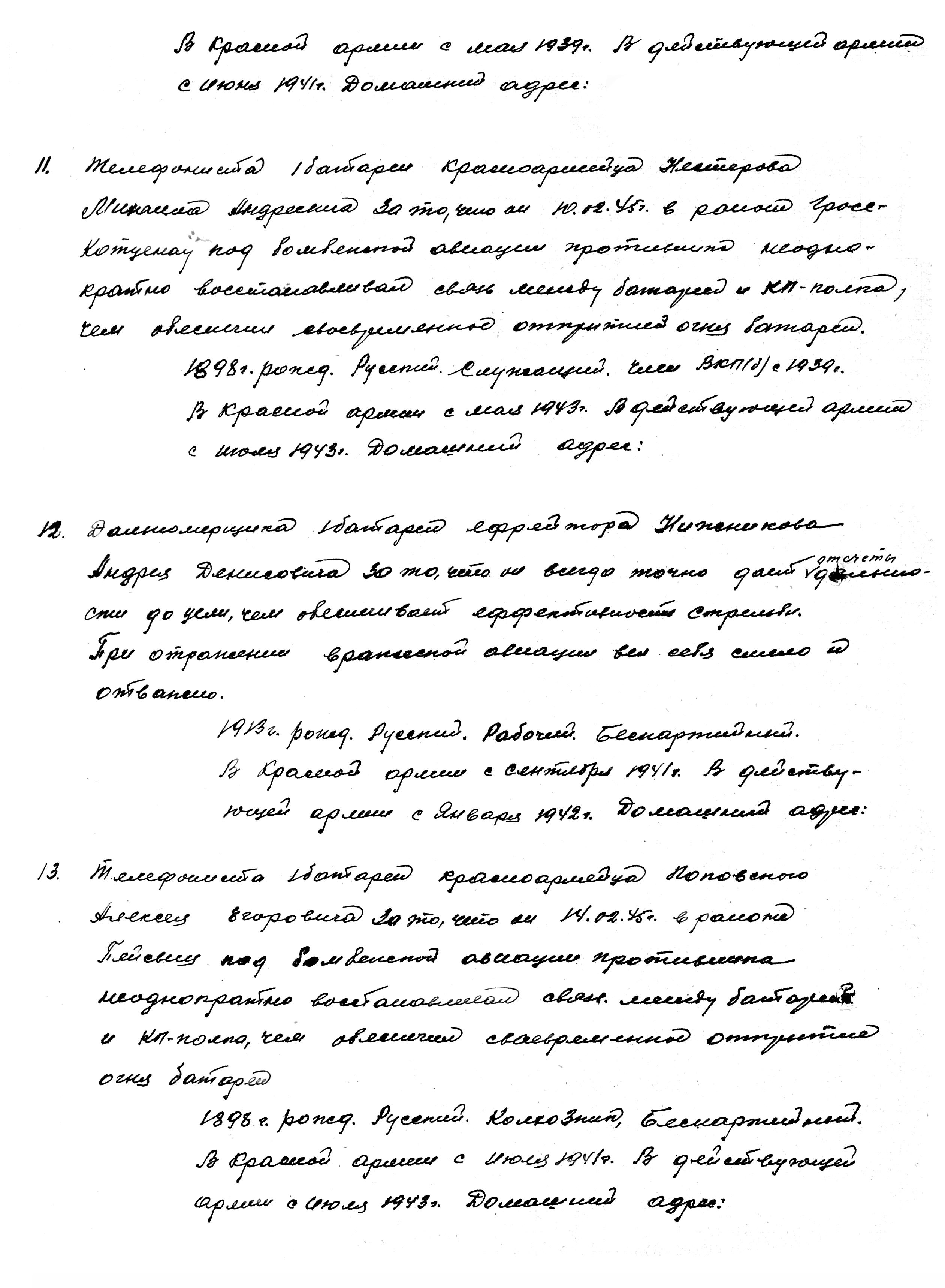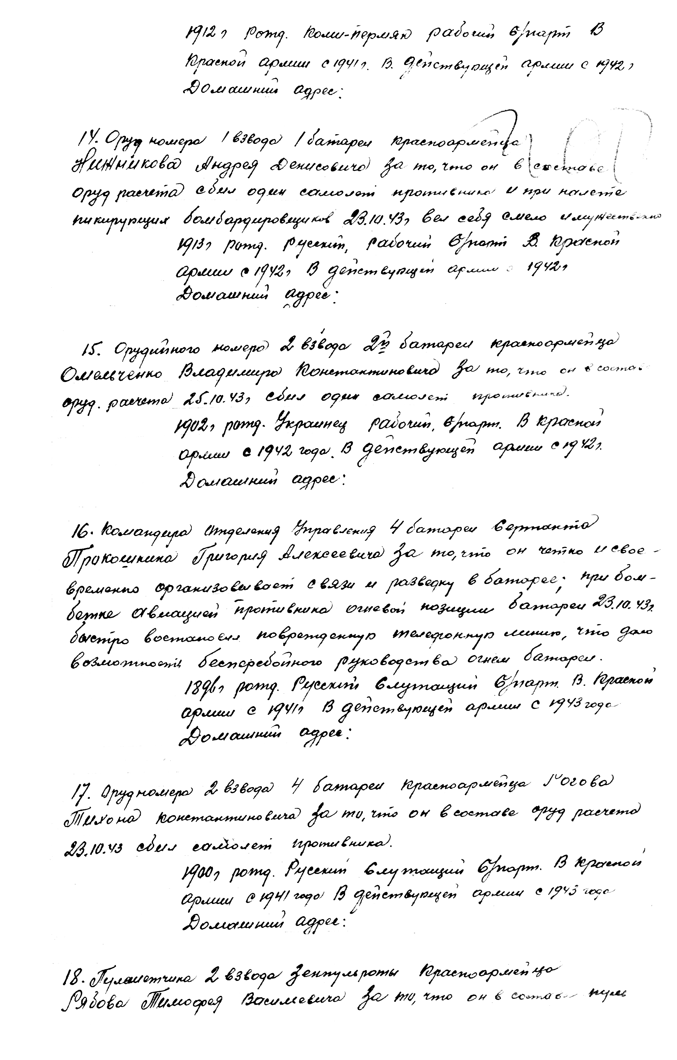 Нижников Андрей Денисович в РККА с сентября 1941 года. Служил в звании ефрейтора в 1394-м зенитном артиллерийском полку 3-й гвардейской танковой армии 1-го Украинского фронта. Сбивал самолёты противника в составе орудийного расчёта. Награды: медаль «За боевые заслуги», 2 медали «За отвагу». Умер Андрей Денисович 13 апреля 1992 года.