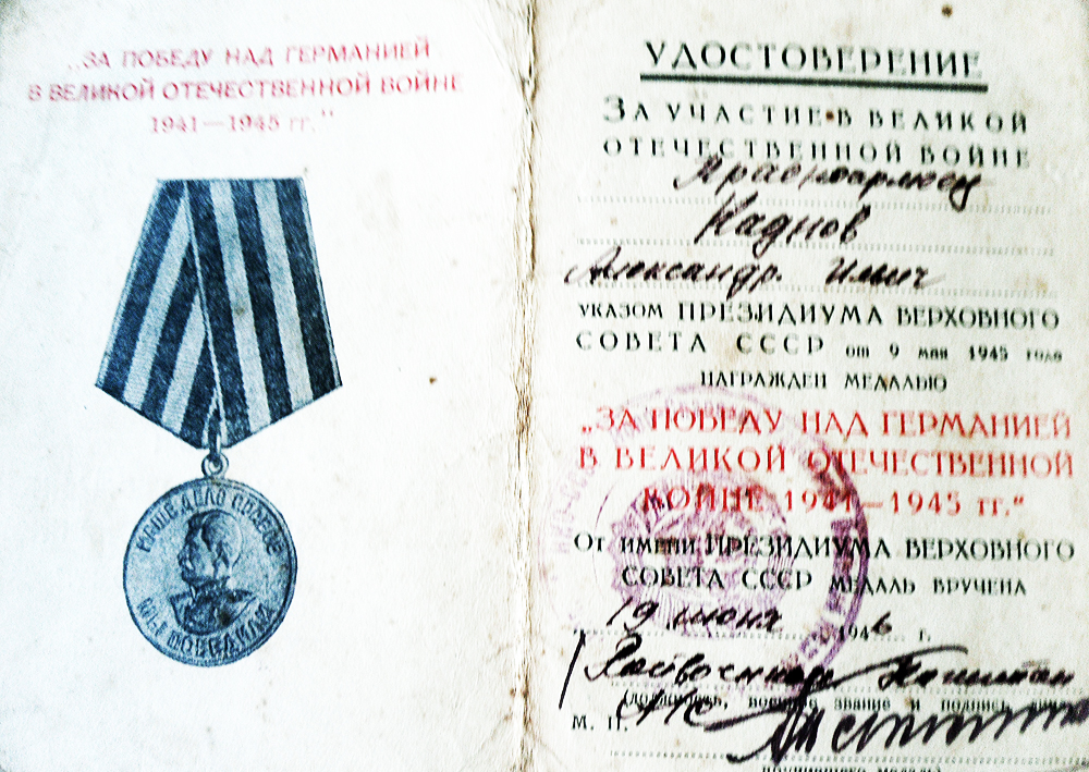 Каднов Александр Ильич окончил 7 классов, гражданская специальность – пчеловод. Призван на военную службу 14 августа 1942 года, нёс службу в стрелковых полках, был тяжело ранен в правую руку 20 июля 1943 года, из-за чего был демобилизован. Награжден: Орден Красной Звезды, медаль «За победу над Германией в Великой Отечественной войне 1941 – 1945 гг.». Событие из военной жизни Каднова А.И. так описано в книге Мельникова И.М. «Хворостянцы в годы Великой Отечественной войны»: «12 июля наступил перелом в битве под Курском. В этот день про¬тив Орловской группировки врага в наступление перешли Брянский и Западный фронты, 15 июля к ним присоединился Центральный фронт, 18 июля на южном фасе выступа перешли в наступление Воронежский и Степной фронты. Начался разгром врага. ...В 2 часа ночи 12 июля на участке 50-й армии ударили «катю¬ши» — это сигнал для наступления. Перешел в наступление 434-й стрелковый полк 169-й дивизии, в котором служил Каднов А.И. (поселок Тополек). «Первые двадцать километров прошли почти легко, — вспоминает Александр Ильич, — наступление сопровожда¬ли «катюши», артиллерия, а с воздуха шли самолеты». На опушке леса враг сильно закрепился. При-шлось залечь, и лишь, дождавшись темноты, полк возобновил наступле¬ние, а к утру заняли одну из оборо¬нительных линий противника. Но чем дальше продвигались советские вой¬ска, тем больше огрызался враг. На Жиздринском направлении 20 июля полк вел наступление на железнодо¬рожный тупик. Впереди плотной сте¬ной стоит лес, за которым скопление танков противника: отчетливо слы¬шен шум танков и тракторов, но ни¬чего не видно. Слева проходил «боль¬шак», попытались прорваться по нему, но он беспрерывно обстрели¬вается из минометов. Вошли в лес и цепью с интервалом в 5-6 шагов во весь рост стали продвигаться, выстрелы теперь слышатся изредка. Но вот лес начал редеть, чаще выстрелы, и сильный пулеметный огонь заставил бойцов залечь. Теперь наступали короткими перебежками, от дерева к дереву, за холмик, а огонь противника плотнее, появи¬лись раненые. Приподнялся Александр Ильич, чтобы выгоднее за¬нять позицию впереди и подкосился, как сноп, рана оказалась серь¬езной. Орден Красной Звезды был вручен уже после войны».