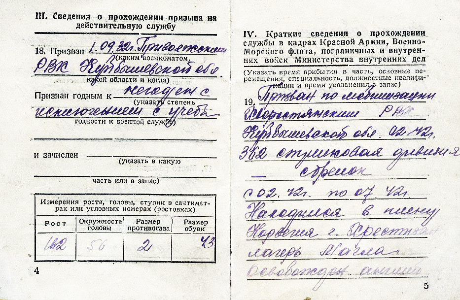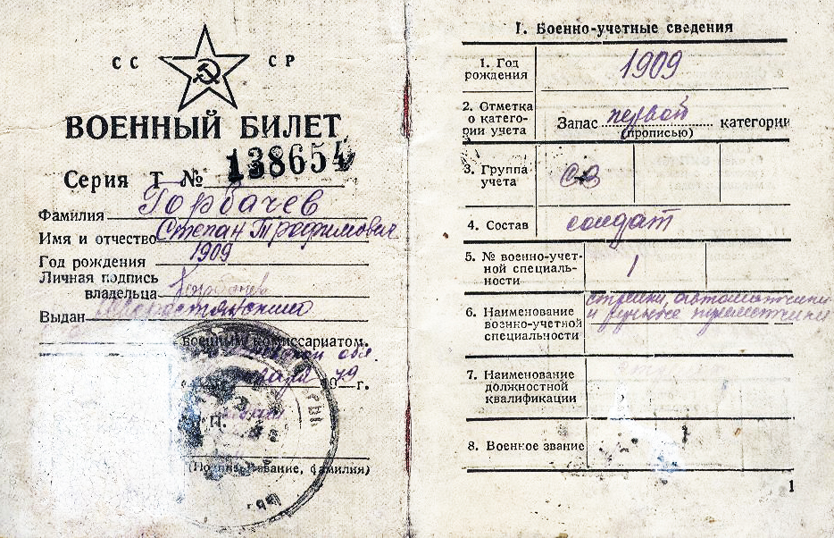 Горбачёв Степан Трофимович родился 19 декабря 1909 г., умер 1 июня 1969 г. Призван по мобилизации Хворостянским райвоенкоматом Куйбышевской области в 1942 г., зачислен стрелком в 362-ю стрелковую дивизию. С февраля 1942 г. по июль 1942 г. находился в плену в городе Хрестнзан (лагерь Магла, Норвегия). Освобожден английскими войсками. С 7 июля 1942 г. по 9 мая 1945 г. был стрелком в 368-го отдельного рабочего батальона.