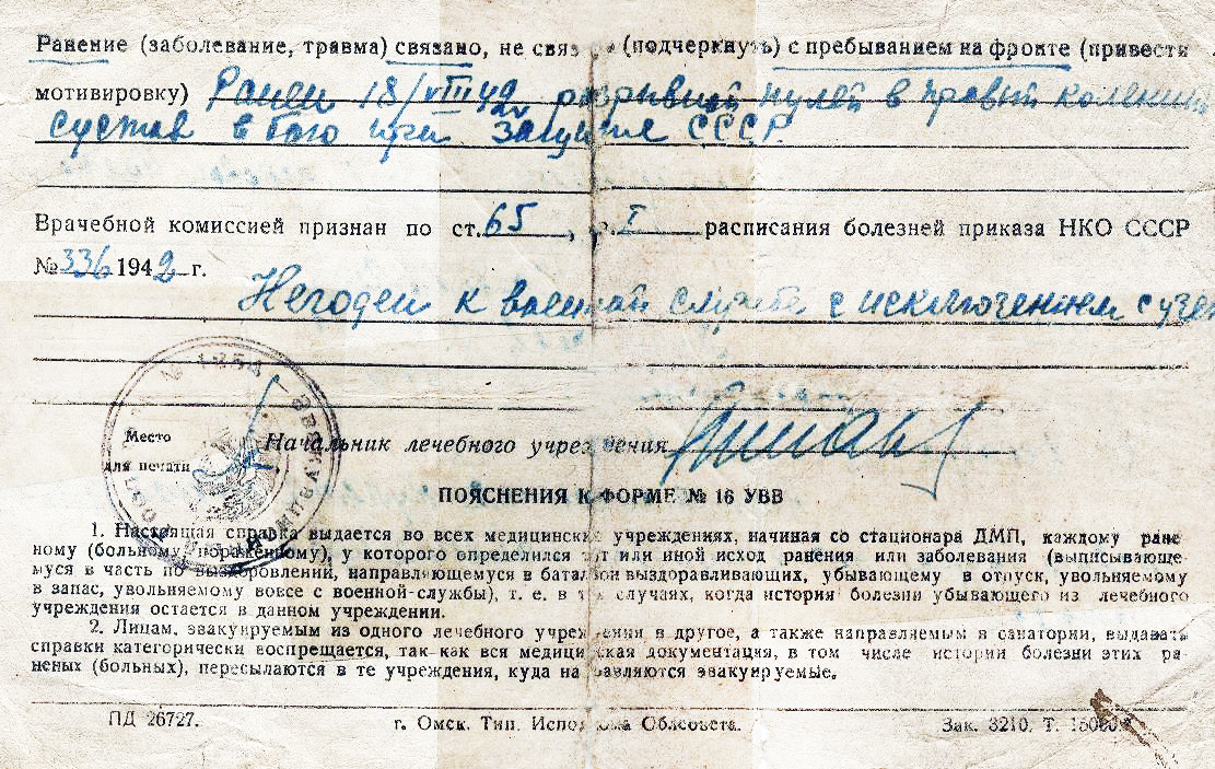 Кудряшов Сергей Егорович был ранен в 1942 году в городе Омск. Находился в эвакуационном госпитале с 24 декабря 1942 года по 17 июня 1943 года. Ему была произведена ампутация ноги, в результате ранения правого коленного сустава в бою. По окончании войны вернулся в Хворостянку. Умер С.Е. Кудряшов 27 марта 1972 года.