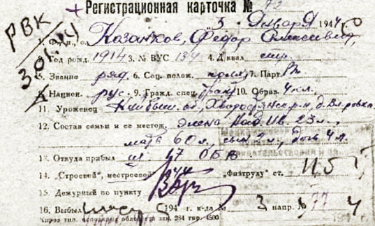 В апреле 1941 года Фёдора Алексеевича Козанкова забрали на подготовку в Тоцкие лагеря. Дома остались беременная жена с маленькой дочкой. Из Тоцких лагерей его перевели на фронт. Первое письмо от него пришло из-под Львова. Так родные узнали, что воевал Федор на Украинском фронте. В 1943 году получил тяжёлое ранение в руку и грудь, попал в госпиталь, где долго лечился. В январе 1944 года вернулся домой. 6 июня 1975 года Козанкова Ф.А. не стало. В последние годы он тяжело болел, давали о себе знать старые раны. Похоронен в селе Хворостянка.