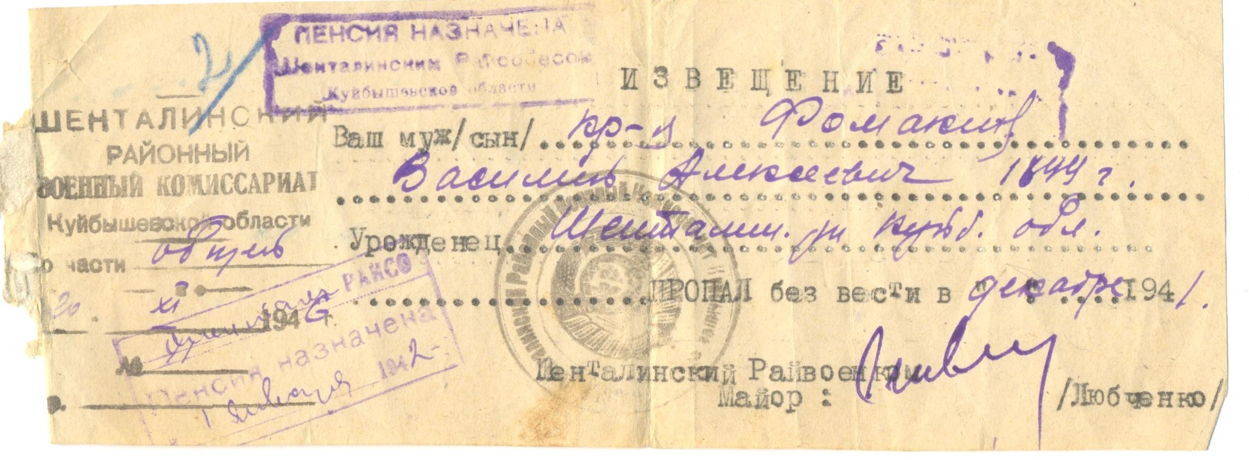 Материал предоставлен правнуком Фомакиным Н.А., п. Нагорный Шенталинского района Самарской области