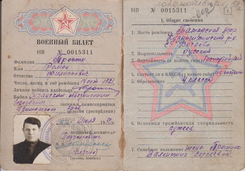 Роман Филиппович Прошин родился в 1921 году, уроженец села Кочеево Кузничихинского района Татарской АССР.