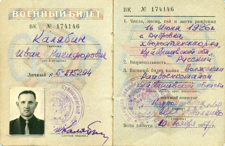 Материалы из семейного архива передал Калябин Иван Никифорович, с. Белозерки Красноярского района Самарской области