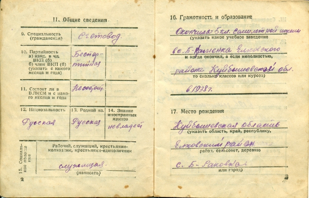 Документы из семейного архива предоставила Дудина Надежда Ивановна, с. Большая Раковка Красноярского района Самарской области