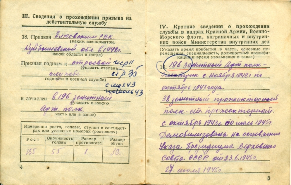 На фронт Антонина Филипповна ушла в ноябре 1942 г., после нескольких месяцев учебы и принятия воинской присяги. Антонина Филипповна была зенитчицей, в 1944 г. их полк принимал участие в освобождении Эстонии. Там она и встретила день Победы. В августе 1945 г. демобилизовалась.