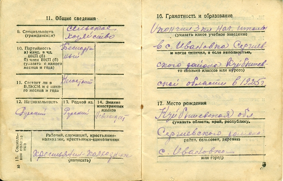 Материалы предоставила дочь Сапожкова Мария Васильевна, с. Русская Селитьба Красноярского района Самарской области