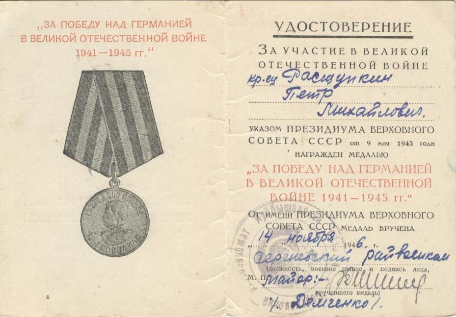Из семейного архива дочери Ращупкиной Валентины Петровны, с. Нероновка Сергиевского района Самарской области