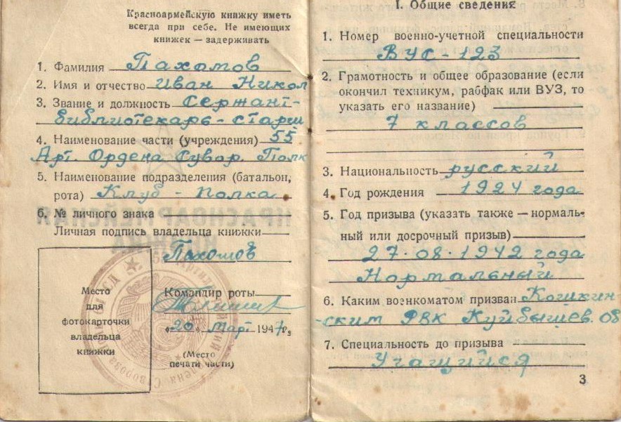Из семейного архива сына Пахомова Виктора Ивановича, с. Старая Дмитриевка Сергиевского района Самарской области